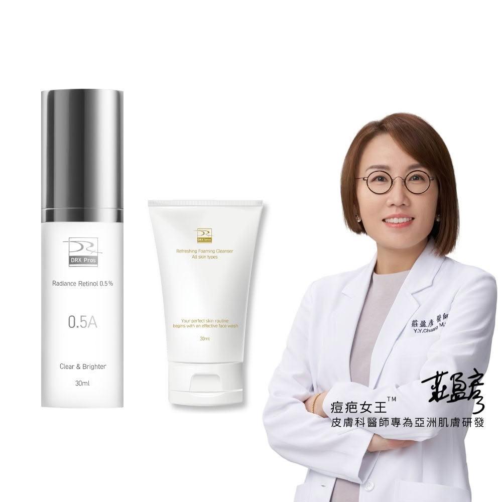 DRX Series 達特仕0.5%維A極淨煥膚亮白乳 30ml+ 超淨化溫和洗面凝膠30ml (抗老、乳霜、淡化細紋、A醇、均勻膚色)