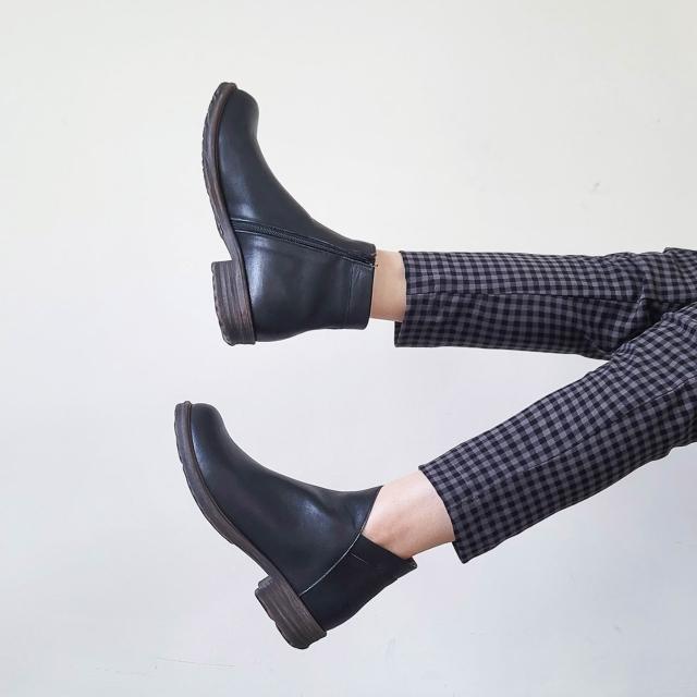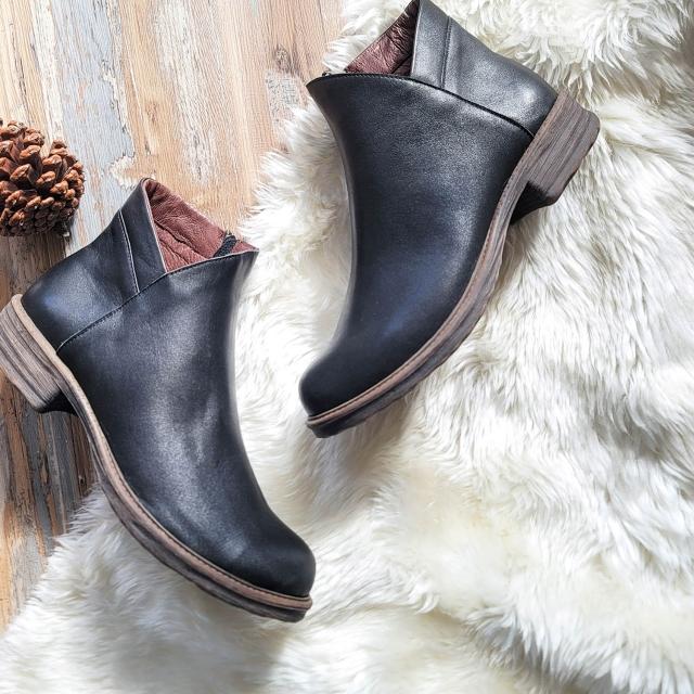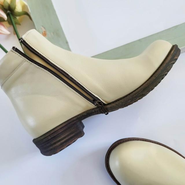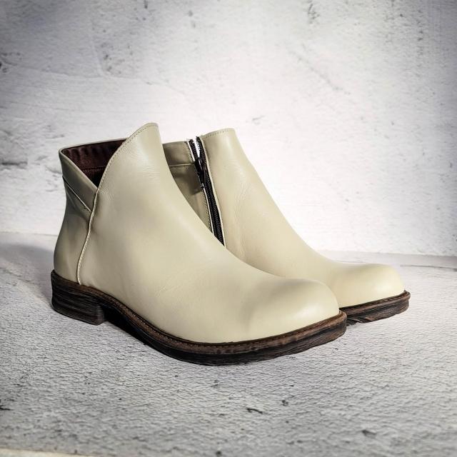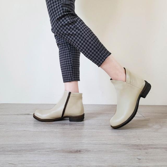 BoingBoing真皮 V口短靴 裸靴 大尺碼 台灣女鞋皮鞋 - 米色 黑色