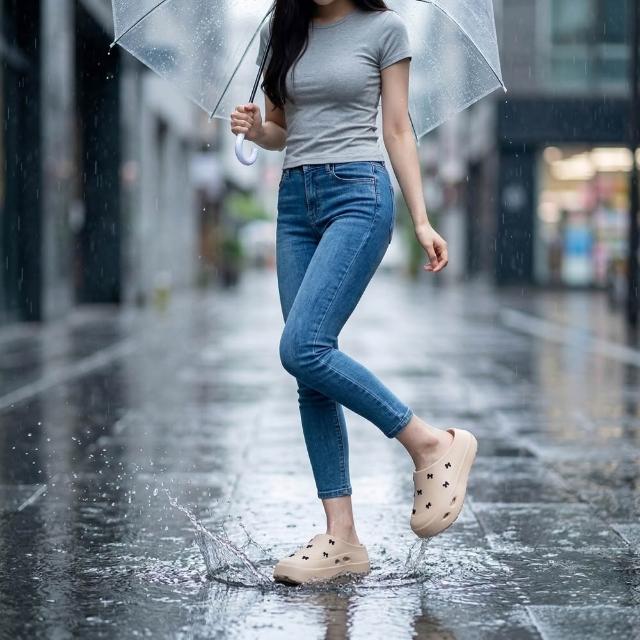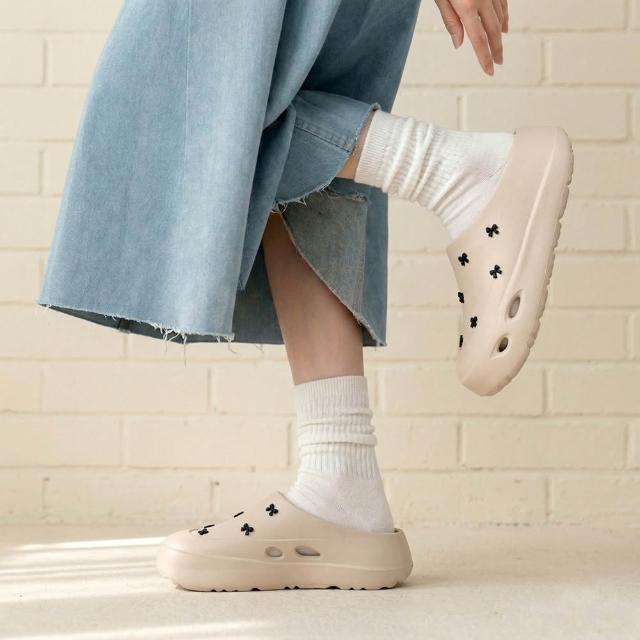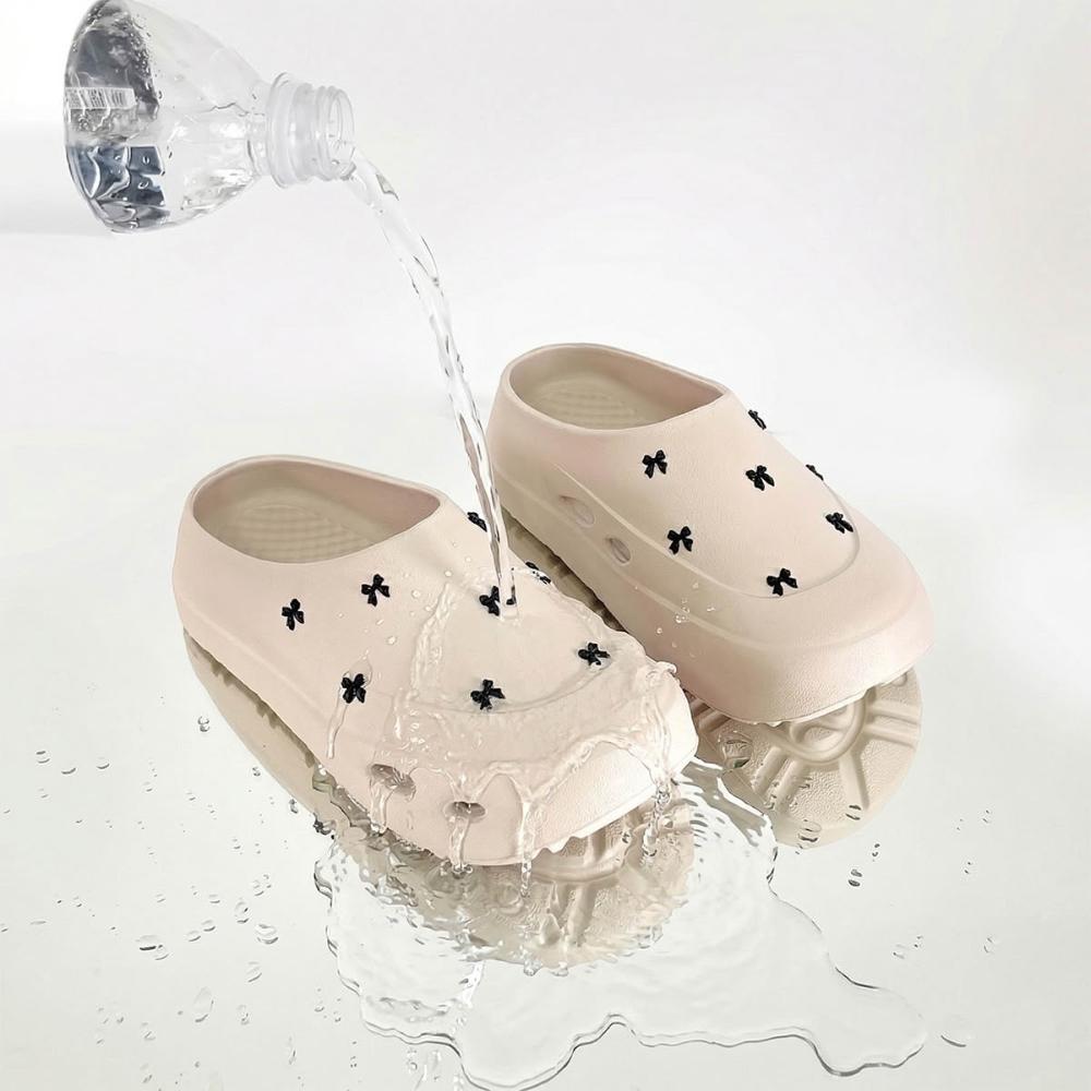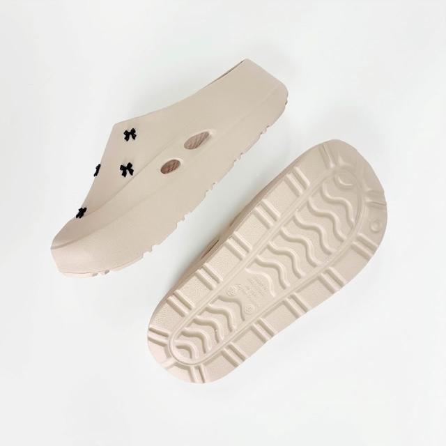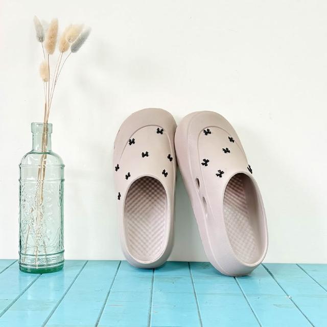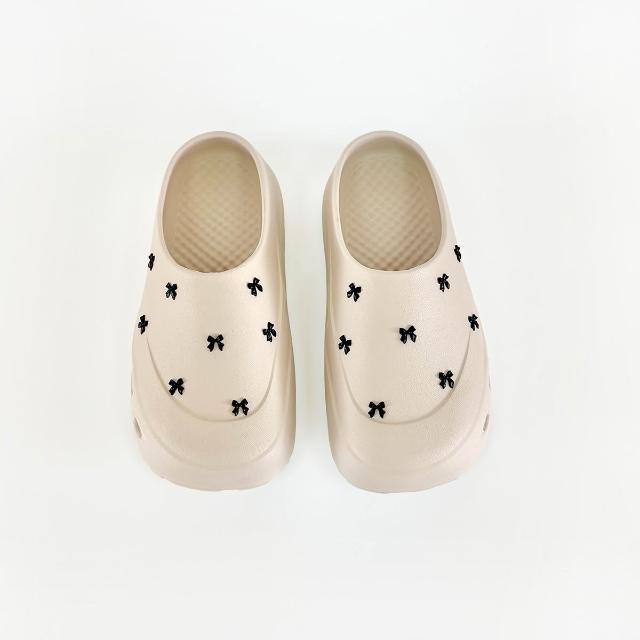 BoingBoing小香風 黑色蝴蝶結防水穆勒拖鞋/前包後空半拖鞋 懶人鞋 奶茶色