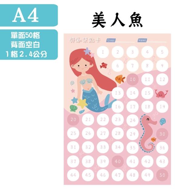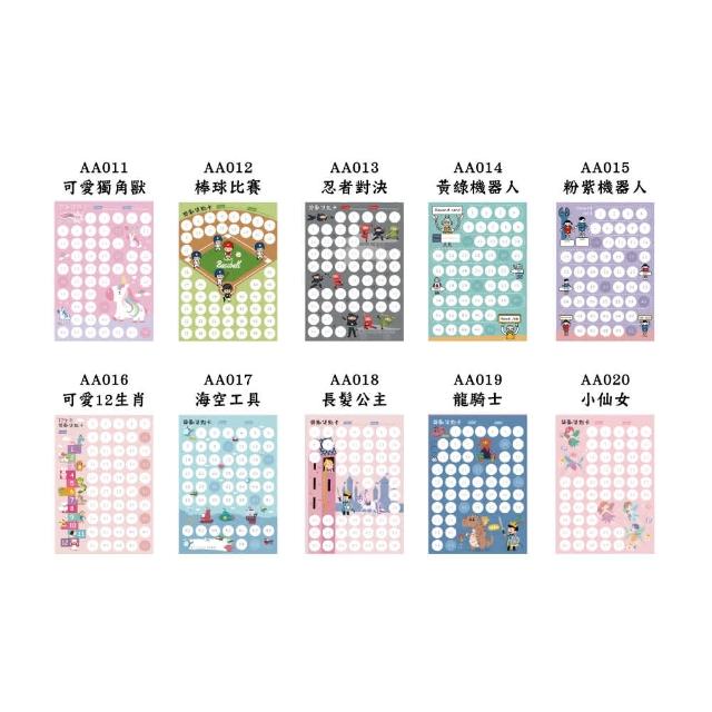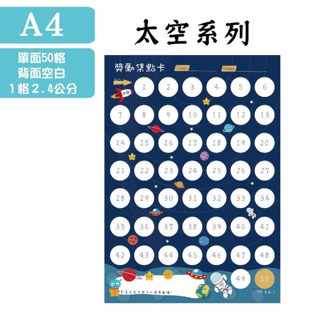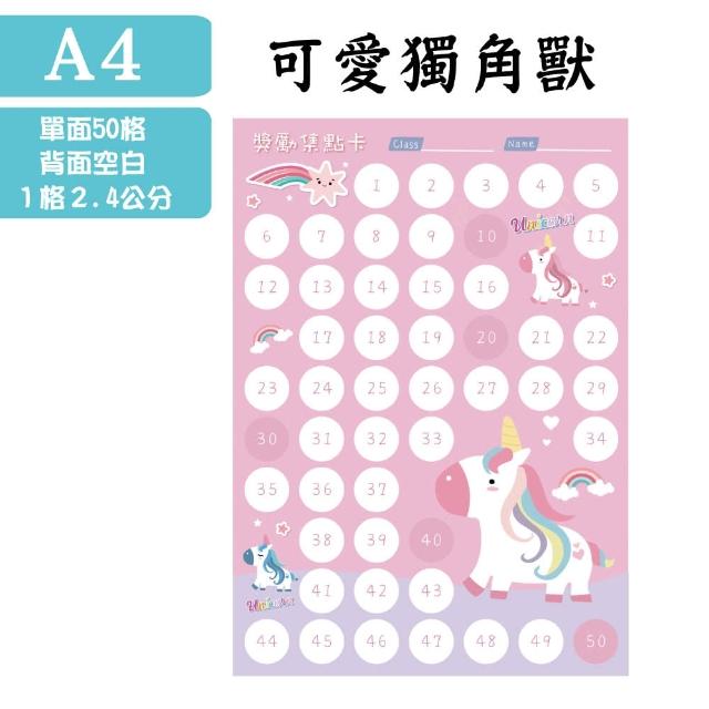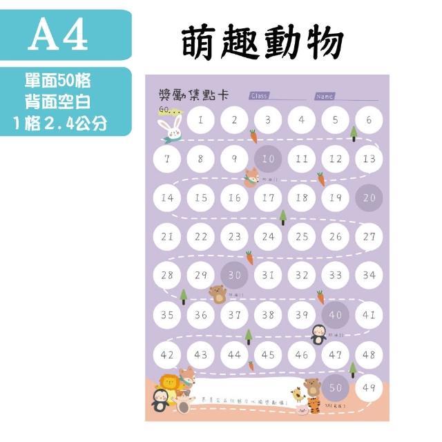 A4集點卡單款20張單面50格獎勵積點鼓勵積點(1格2.4公分 1款圖案各20張集點卡獎勵卡獎勵安親班集點卡)