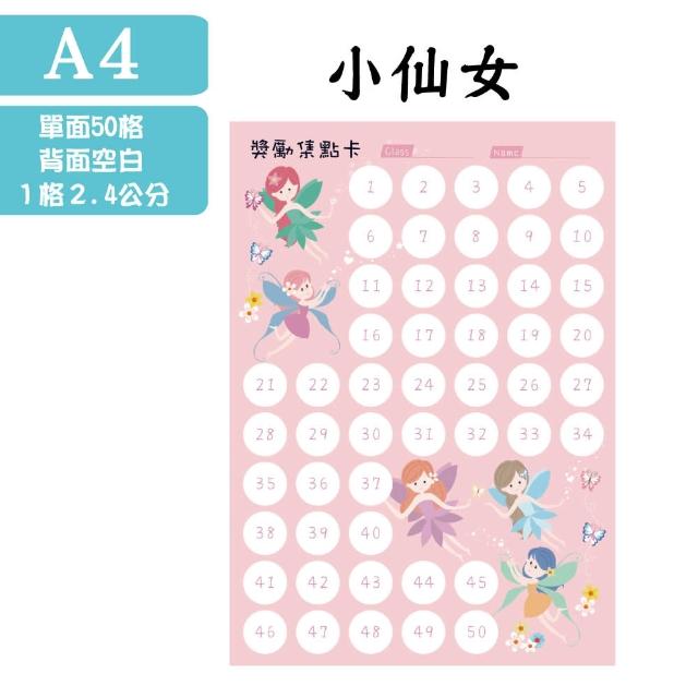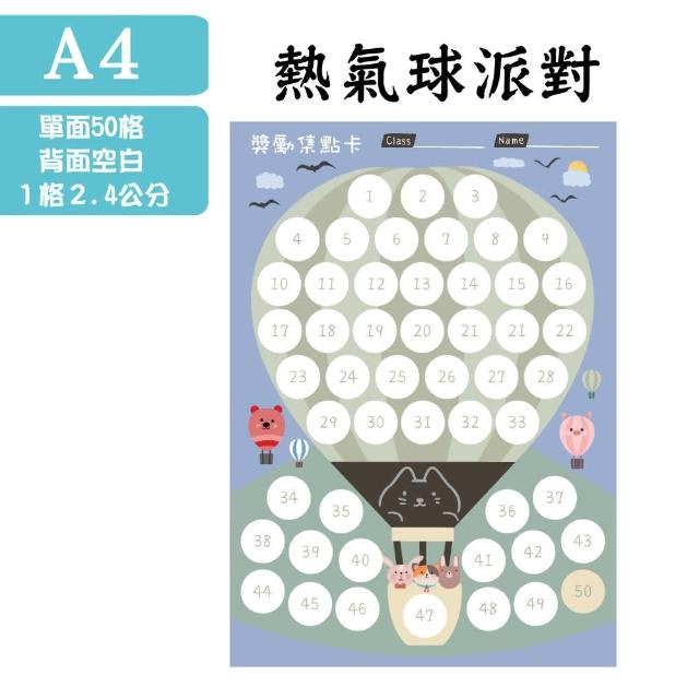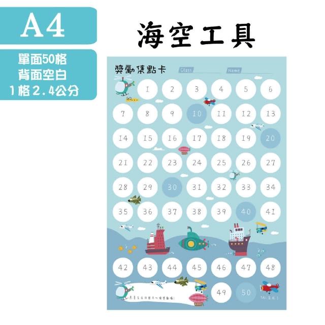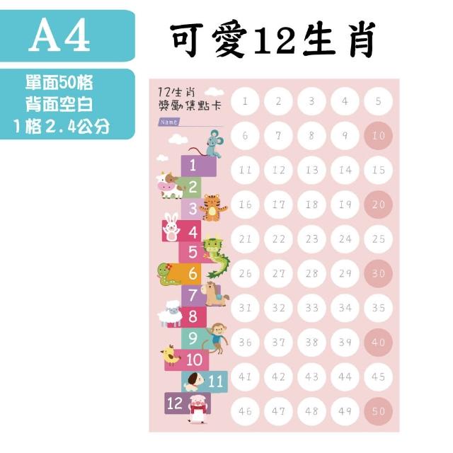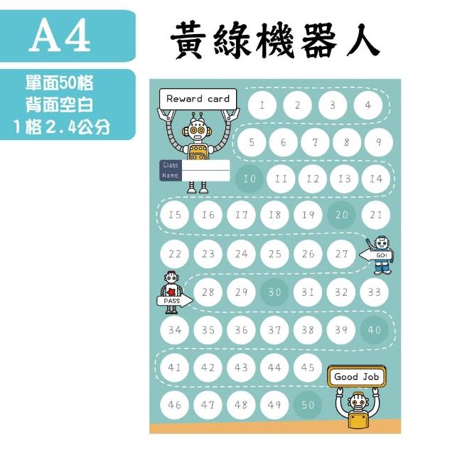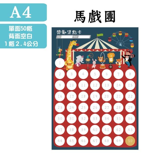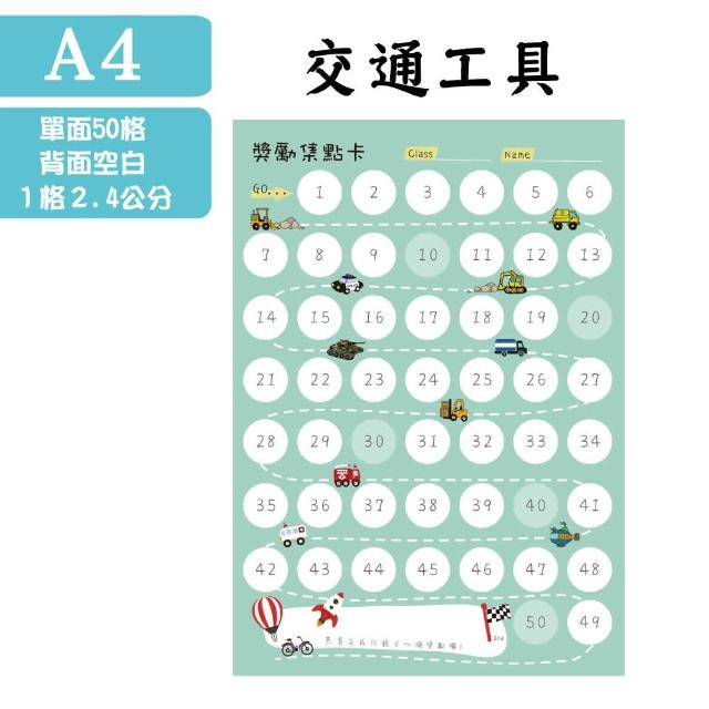 A4集點卡單款20張單面50格獎勵積點鼓勵積點(1格2.4公分 1款圖案各20張集點卡獎勵卡獎勵安親班集點卡)