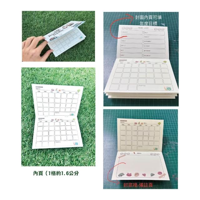手寫空白月曆款集點本5本組-10x15公分本彩色內頁12頁(1格約1.6公分)月計劃集點存摺兒童心願存摺月目標追蹤集點本