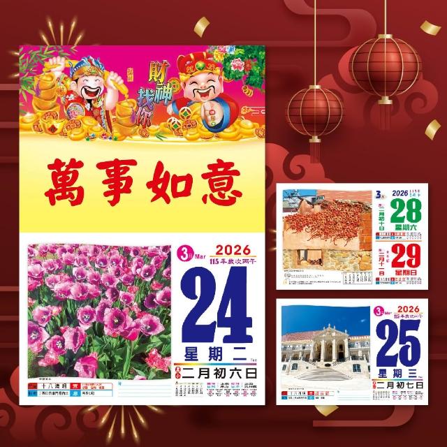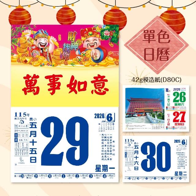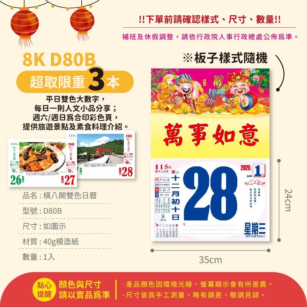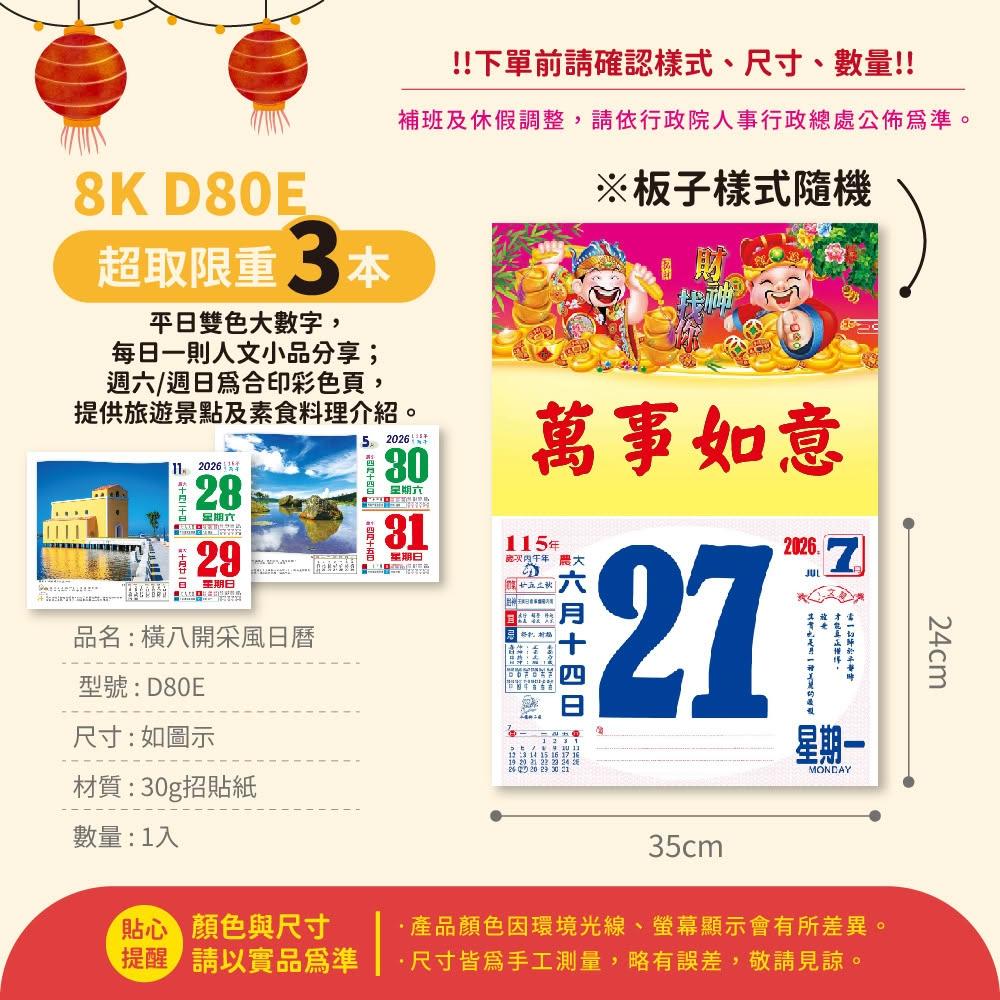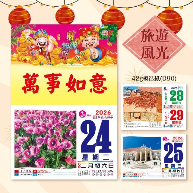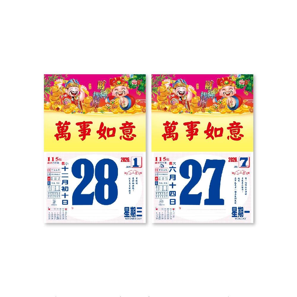 2026年 8K橫式彩色傳統日曆 (日曆 8開 手撕日曆 傳統日曆 掛式日曆 模造日曆)