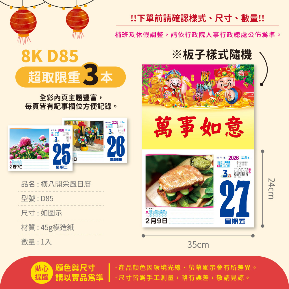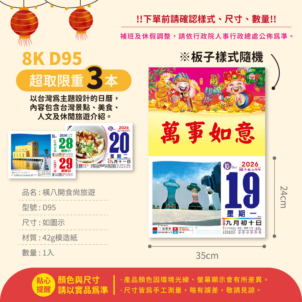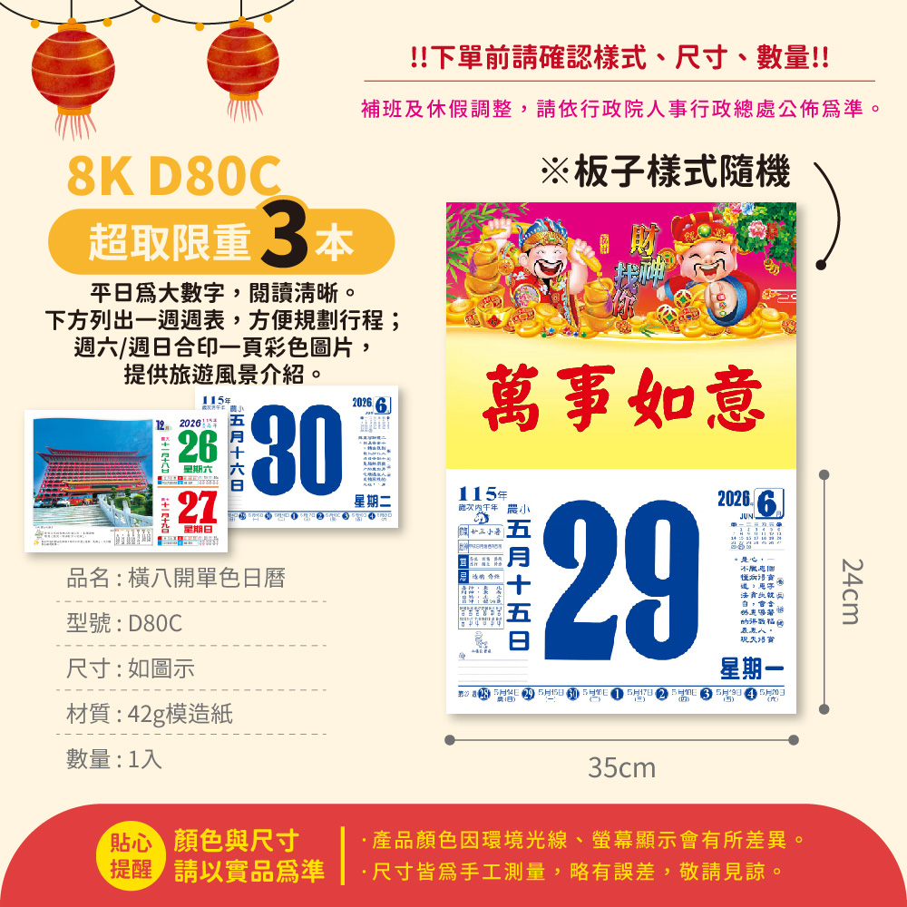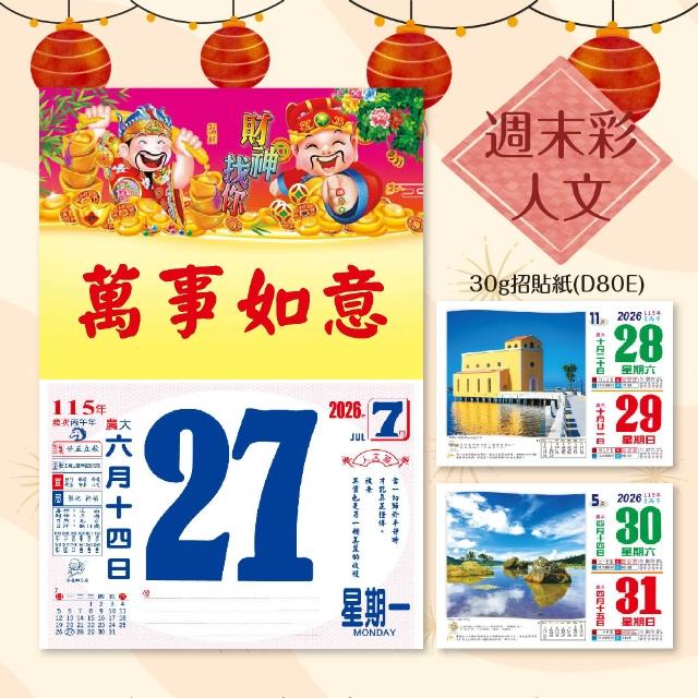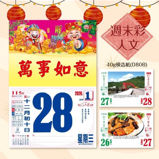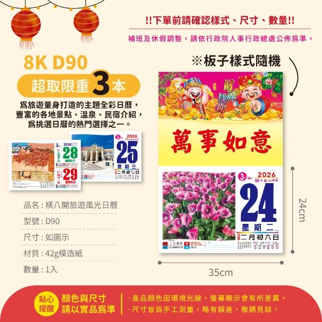 2026年 8K橫式彩色傳統日曆 (日曆 8開 手撕日曆 傳統日曆 掛式日曆 模造日曆)