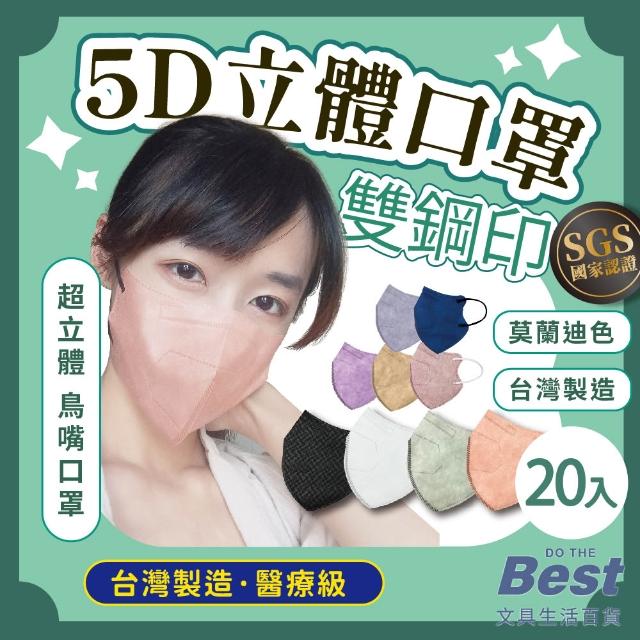 大成5D醫療口罩 3D口罩 20入 醫療口罩 KN95 碟形口罩 鳥嘴口罩 台灣製造 立體醫療口罩 口罩醫療 雙鋼印