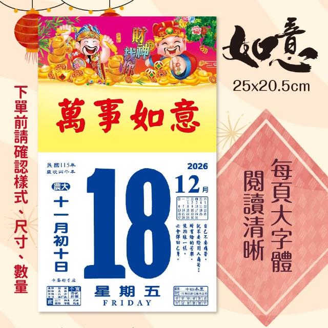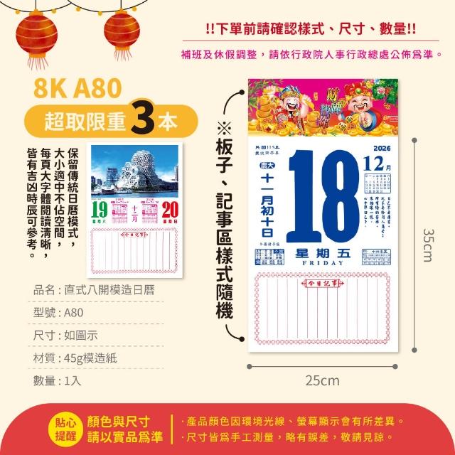 2026年 傳統8開直式日曆 模造日曆 日曆 年曆 傳統日曆 手撕日曆