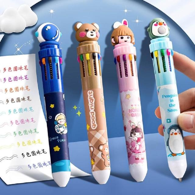 10色圓珠筆 彩色中性原子筆 按壓筆 卡通原子筆 圓珠筆