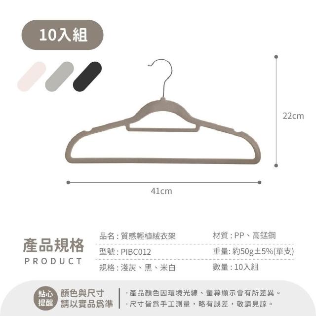 質感植絨衣架-10入組- 圓弧防滑衣架 舒適植感衣架 衣物收納