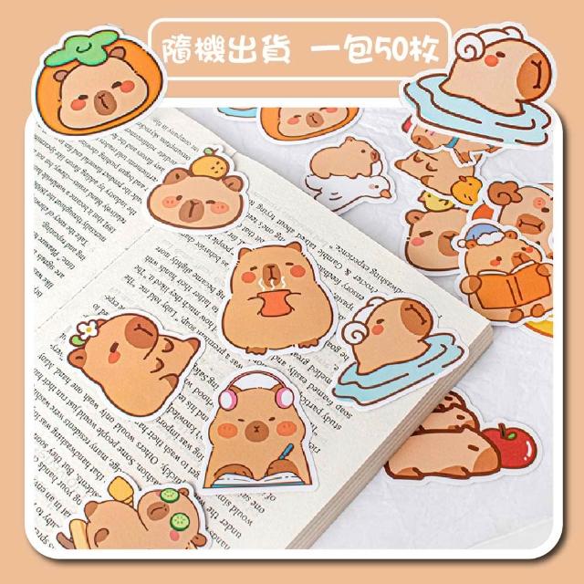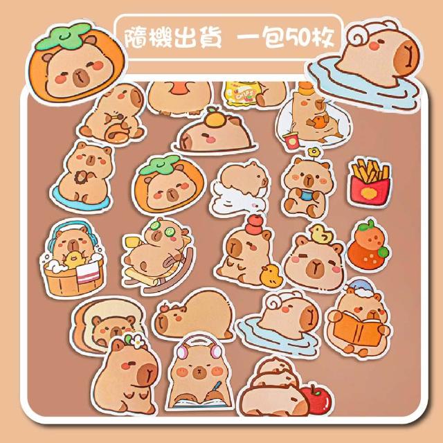 卡皮巴拉造型貼紙 50枚 貼紙 可愛貼紙 水豚君 貼紙套組 貼紙組 貼紙包 動物貼紙 卡皮巴拉