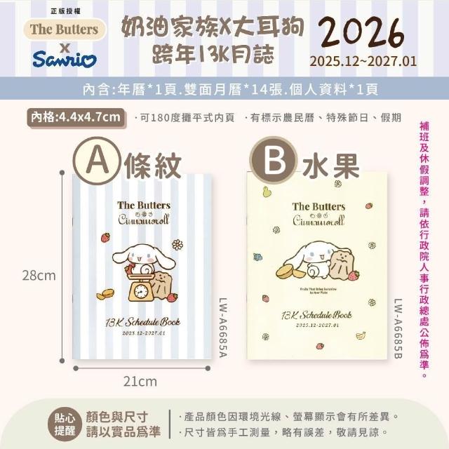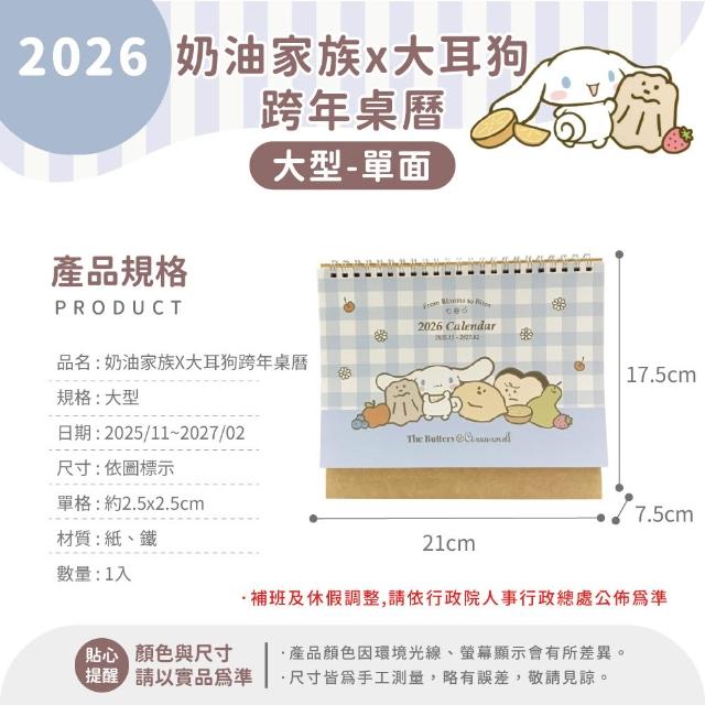 SANRIO 三麗鷗2026 25K跨年月誌 跨年掛曆 桌曆 奶油家族 大耳狗 跨年手帳 年度計畫 行程表