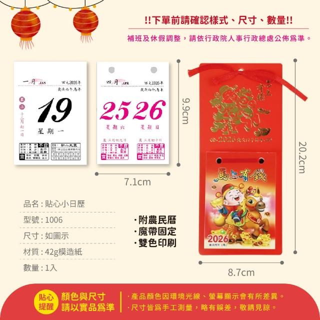 2026 順暘 小日曆可撕 打孔行事曆 農民曆傳統 小掛曆貼牆掛牆