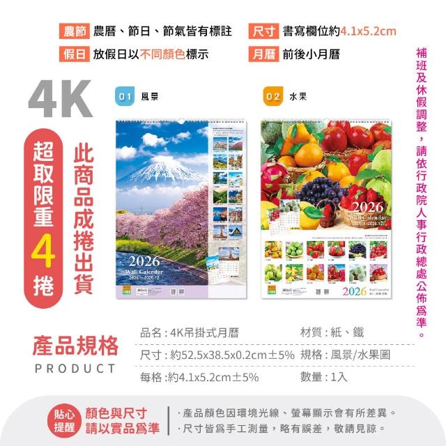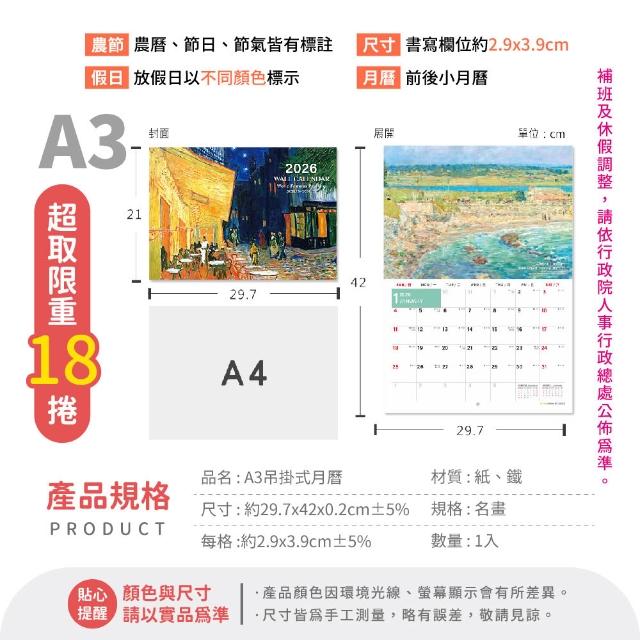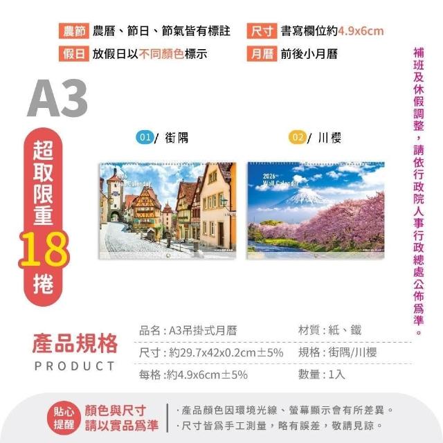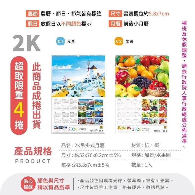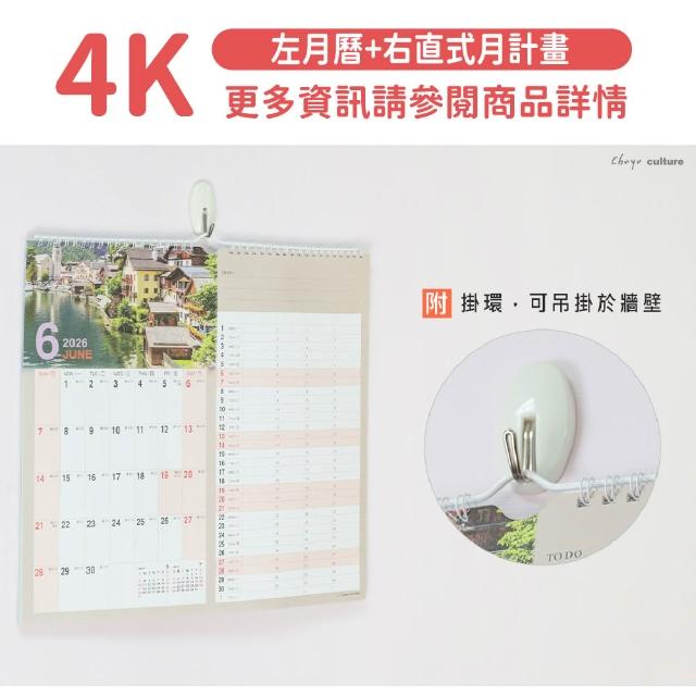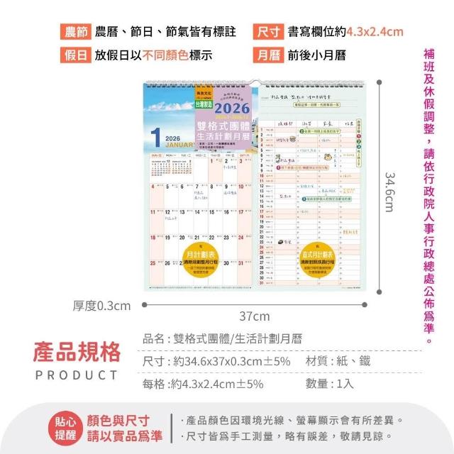 珠友2026 掛式月曆 掛曆 計劃表 農曆 年曆 壁掛 行事曆 月曆 吊掛 線圈