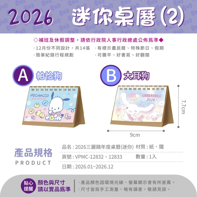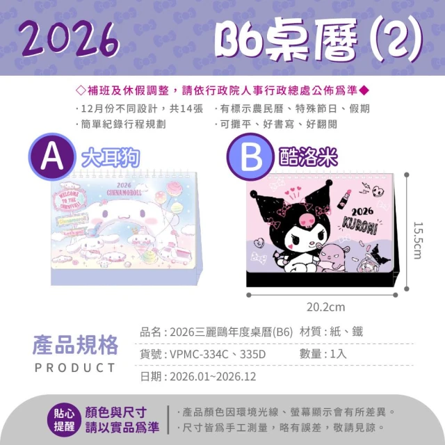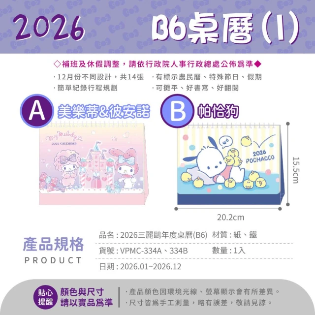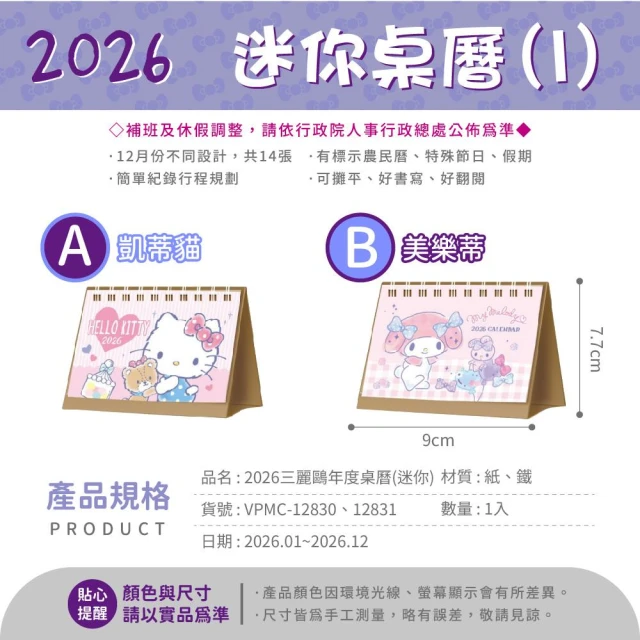 SANRIO 三麗鷗2026 三麗鷗 B6桌曆 三角月曆 桌曆 行事曆 記事日曆 月曆 桌上型月曆 凱蒂貓 美樂蒂 雙子星【206】