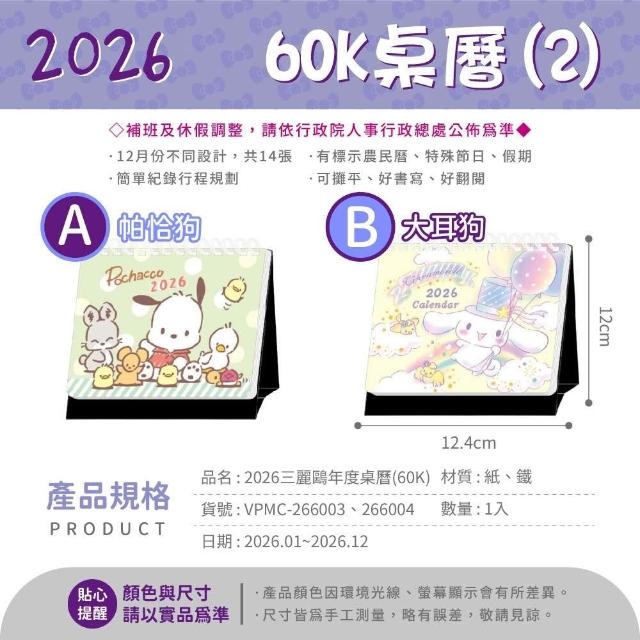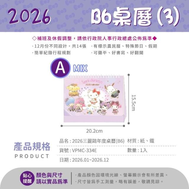 SANRIO 三麗鷗2026 三麗鷗 B6桌曆 三角月曆 桌曆 行事曆 記事日曆 月曆 桌上型月曆 凱蒂貓 美樂蒂 雙子星【206】