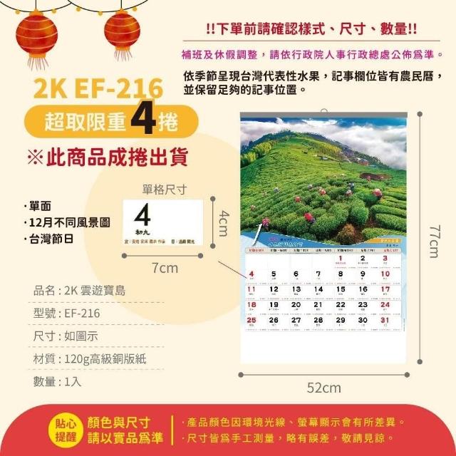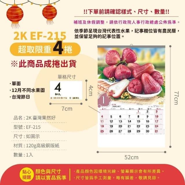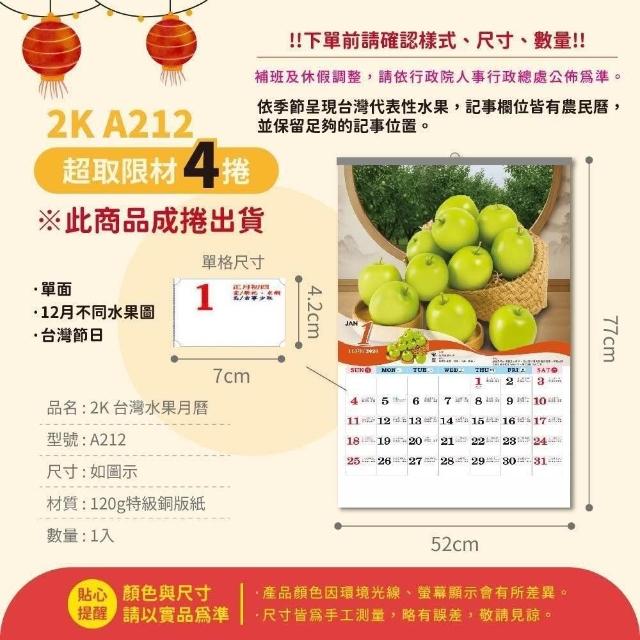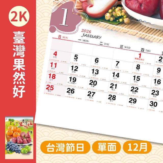 2026年 2開月曆 超大月曆 台灣水果 台灣風景 傳統月曆