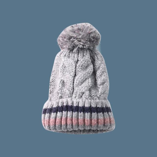 ZOII 佐壹條紋麻花球球毛帽(絨毛 毛帽 球球毛帽 毛球毛帽 秋冬毛帽 保暖毛帽 麻花毛帽 #103011)