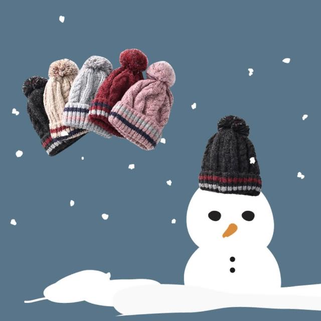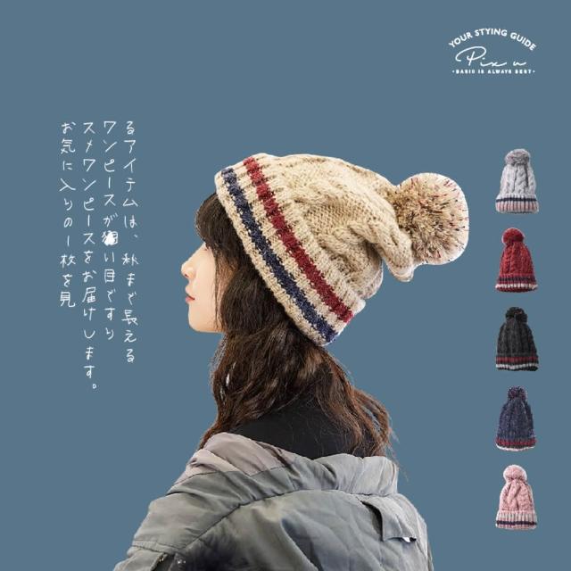 ZOII 佐壹條紋麻花球球毛帽(絨毛 毛帽 球球毛帽 毛球毛帽 秋冬毛帽 保暖毛帽 麻花毛帽 #103011)