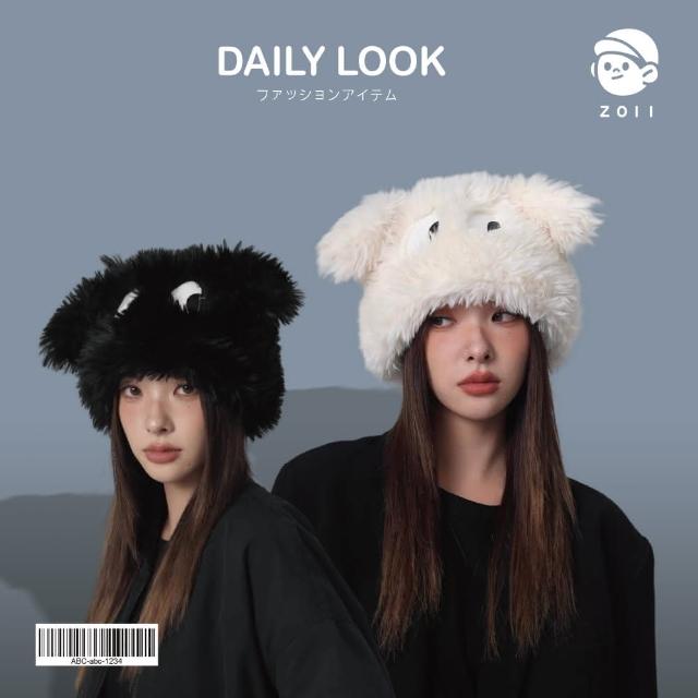 ZOII 佐壹JOJO狗毛絨毛帽(毛帽 毛線帽 小惡魔帽 貓咪帽 針織帽 保暖帽 秋冬帽 護耳帽#103054)