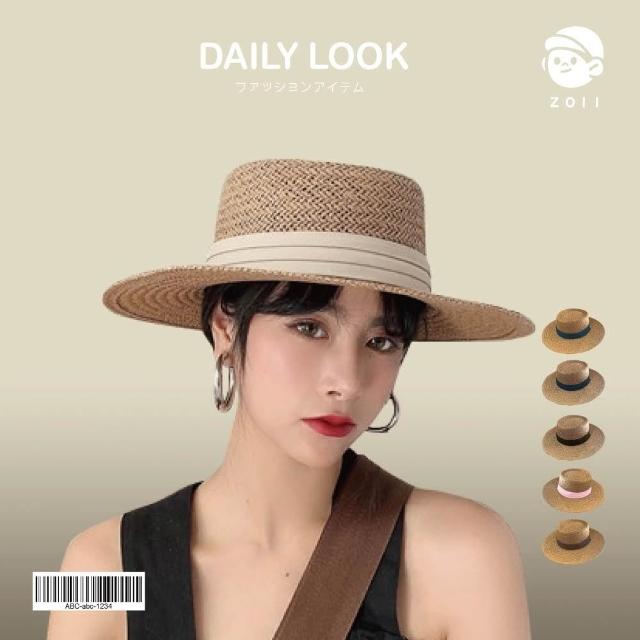 ZOII 佐壹高品質手工編織平簷綁帶草帽 草帽 草編帽 渡假草帽 海灘帽 防曬帽 遮陽帽#107026