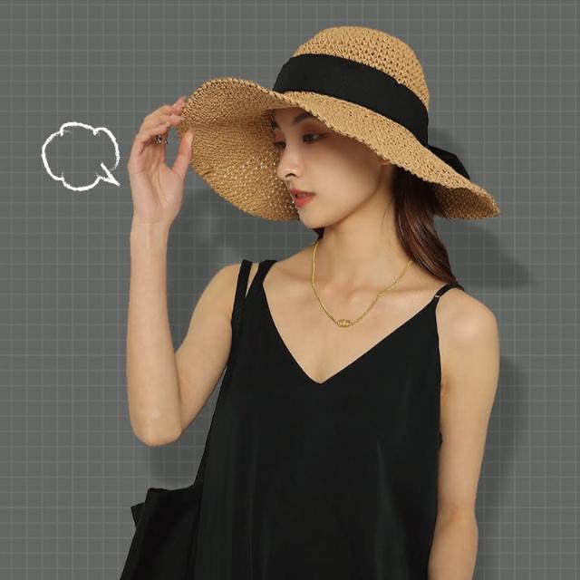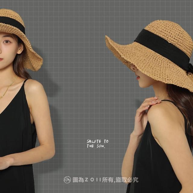 ZOII 佐壹緞帶大簷草編帽(草帽專賣 帽子 遮陽帽 淑女帽 草帽 編織草帽 大邊草帽 夏天 海邊 #107014)