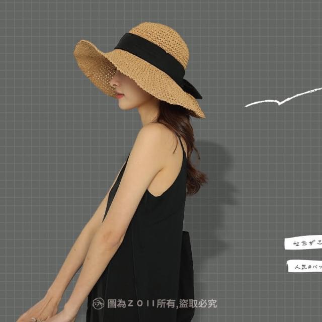 ZOII 佐壹緞帶大簷草編帽(草帽專賣 帽子 遮陽帽 淑女帽 草帽 編織草帽 大邊草帽 夏天 海邊 #107014)