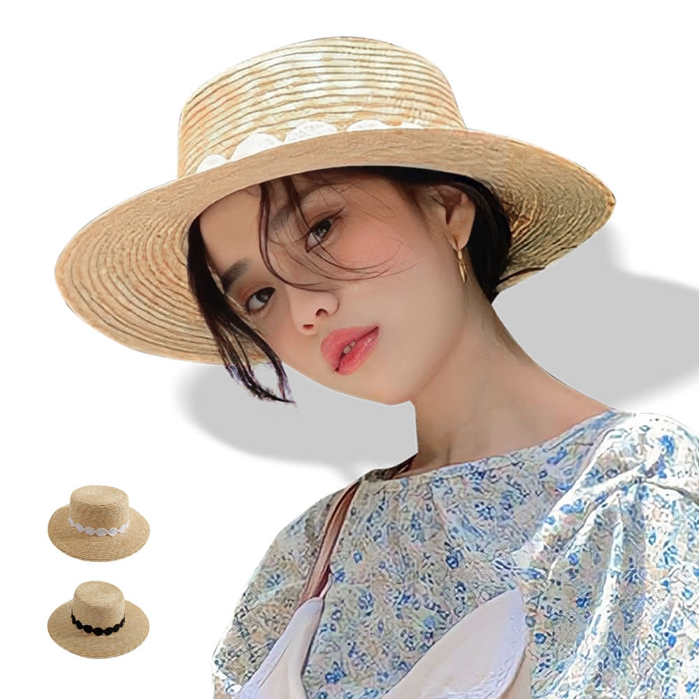 ZOII 佐壹蕾絲花邊平頂草帽(淑女帽 碎花編織 草帽 度假草帽 編織帽 春夏必備 穿搭 海邊 #107047)