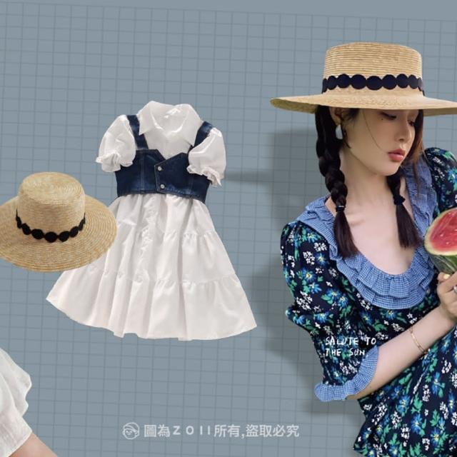 ZOII 佐壹蕾絲花邊平頂草帽(淑女帽 碎花編織 草帽 度假草帽 編織帽 春夏必備 穿搭 海邊 #107047)