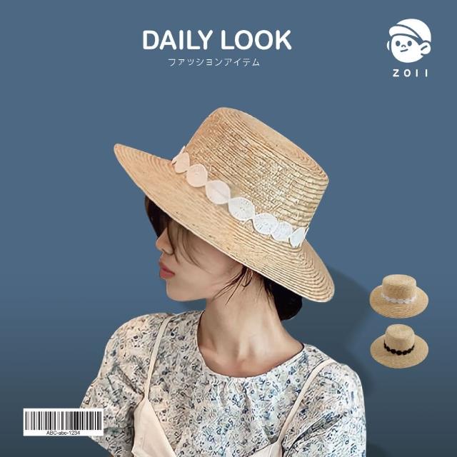 ZOII 佐壹蕾絲花邊平頂草帽(淑女帽 碎花編織 草帽 度假草帽 編織帽 春夏必備 穿搭 海邊 #107047)