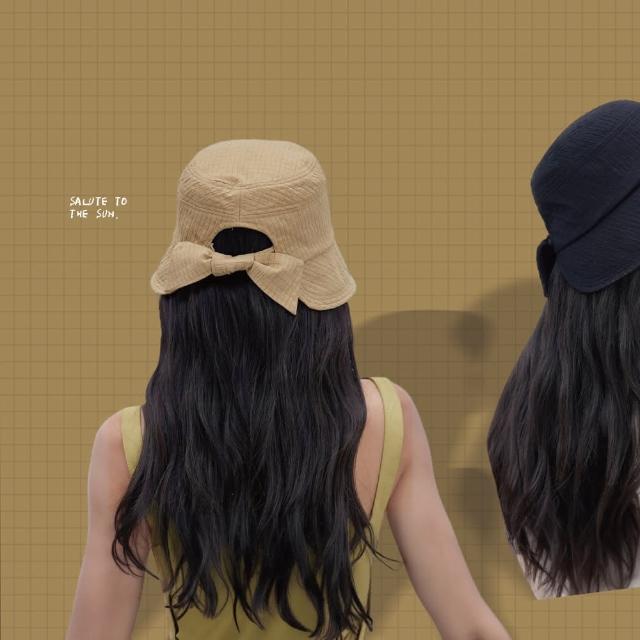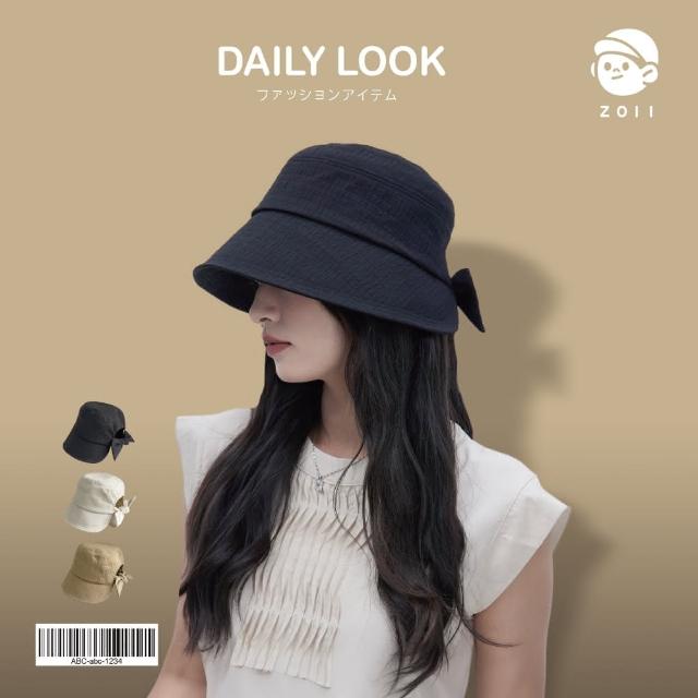 ZOII 佐壹蝴蝶結華夫格漁夫帽(淑女帽 漁夫帽 度假帽 遮陽帽 帽子 防曬帽 紫外線 大帽簷 #101010)