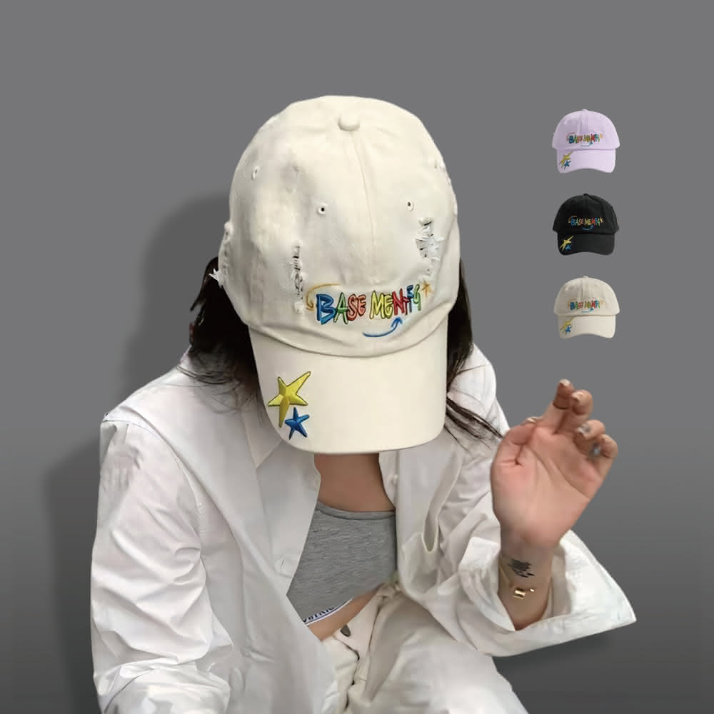 ZOII 佐壹星星刷破老帽(帽子 Y2K 刷破老帽 仿舊 刺繡老帽 老帽 棒球帽 鴨舌帽 街頭 #102051)