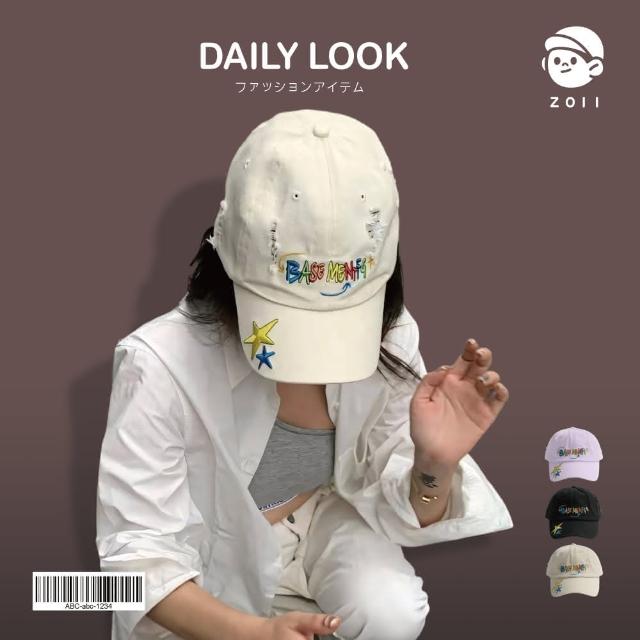 ZOII 佐壹星星刷破老帽(帽子 Y2K 刷破老帽 仿舊 刺繡老帽 老帽 棒球帽 鴨舌帽 街頭 #102051)