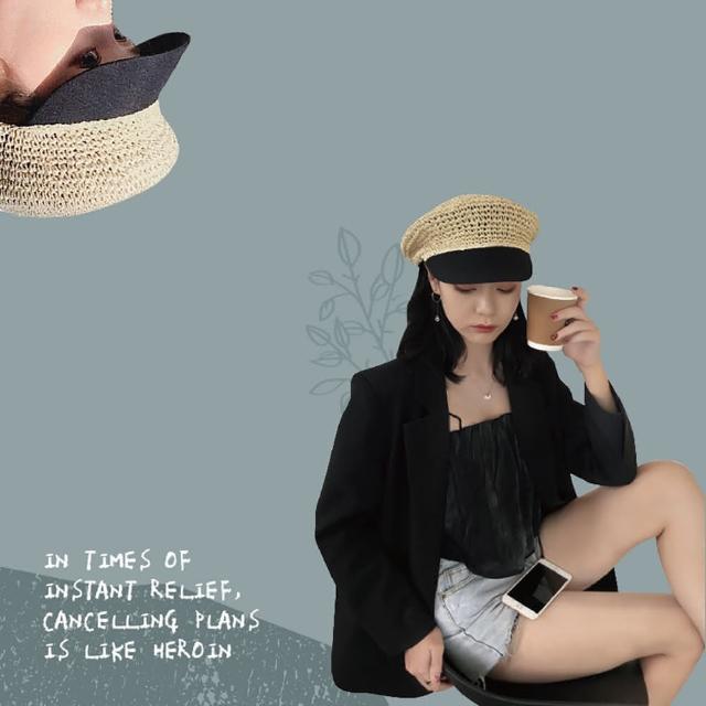 ZOII 佐壹草編拼接報童帽(畫家帽 帽 帽子 草編帽 報童帽 八角帽 貝雷帽#105027)