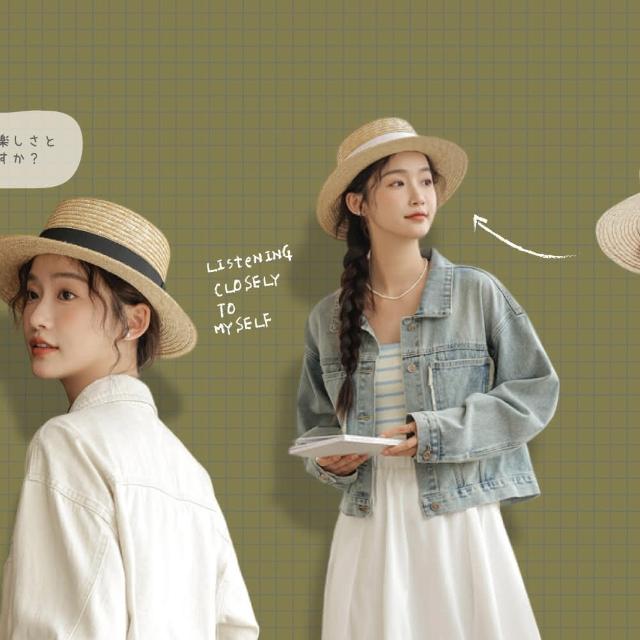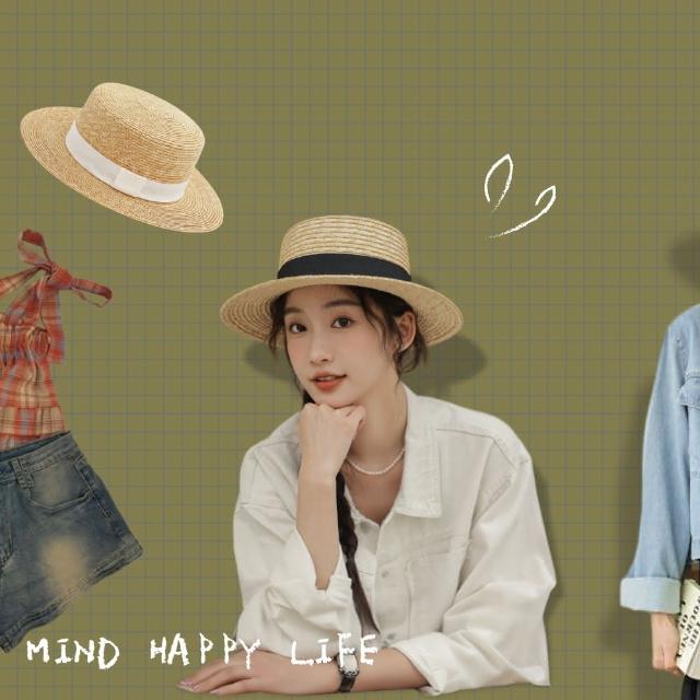 ZOII 佐壹3尺碼 麥稈編織平頂草帽(編織草帽 草帽 草編帽 渡假穿搭 草帽 海邊穿搭 #107027)