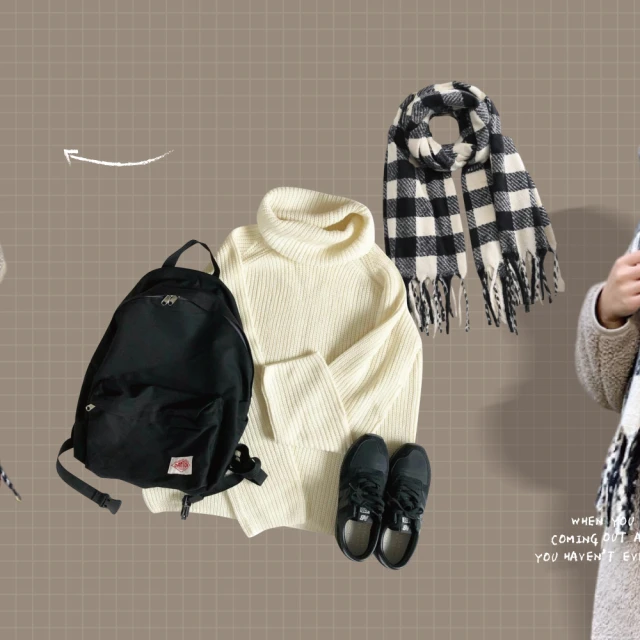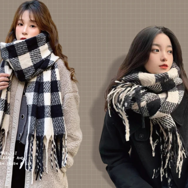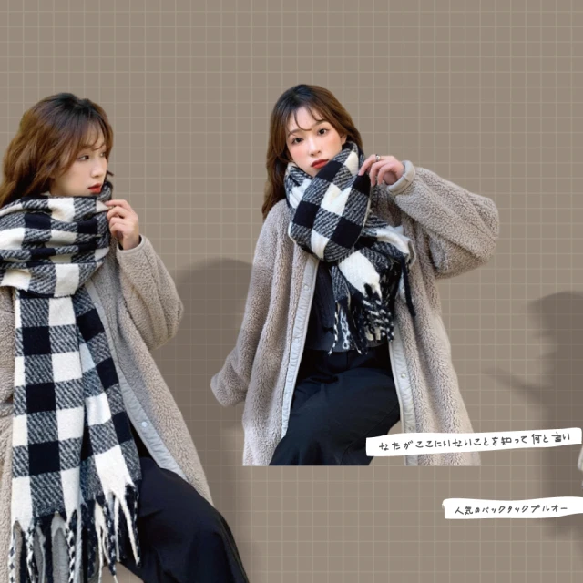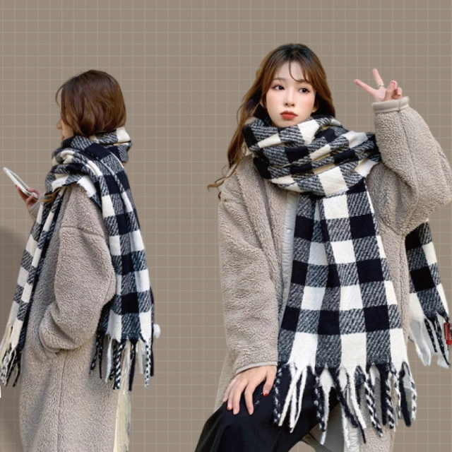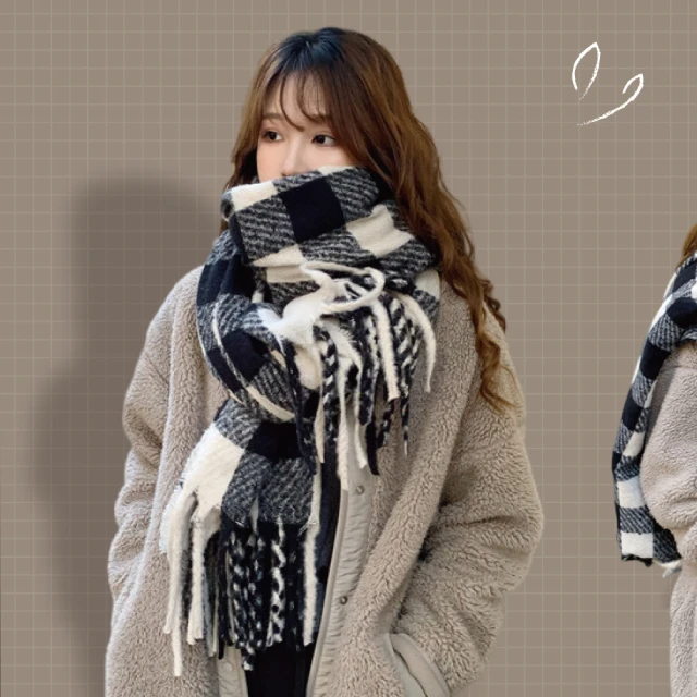ZOII 佐壹黑白格紋加厚羊毛圍巾(圍巾 保暖圍巾 冬天圍巾 披肩 圍巾女#322022)