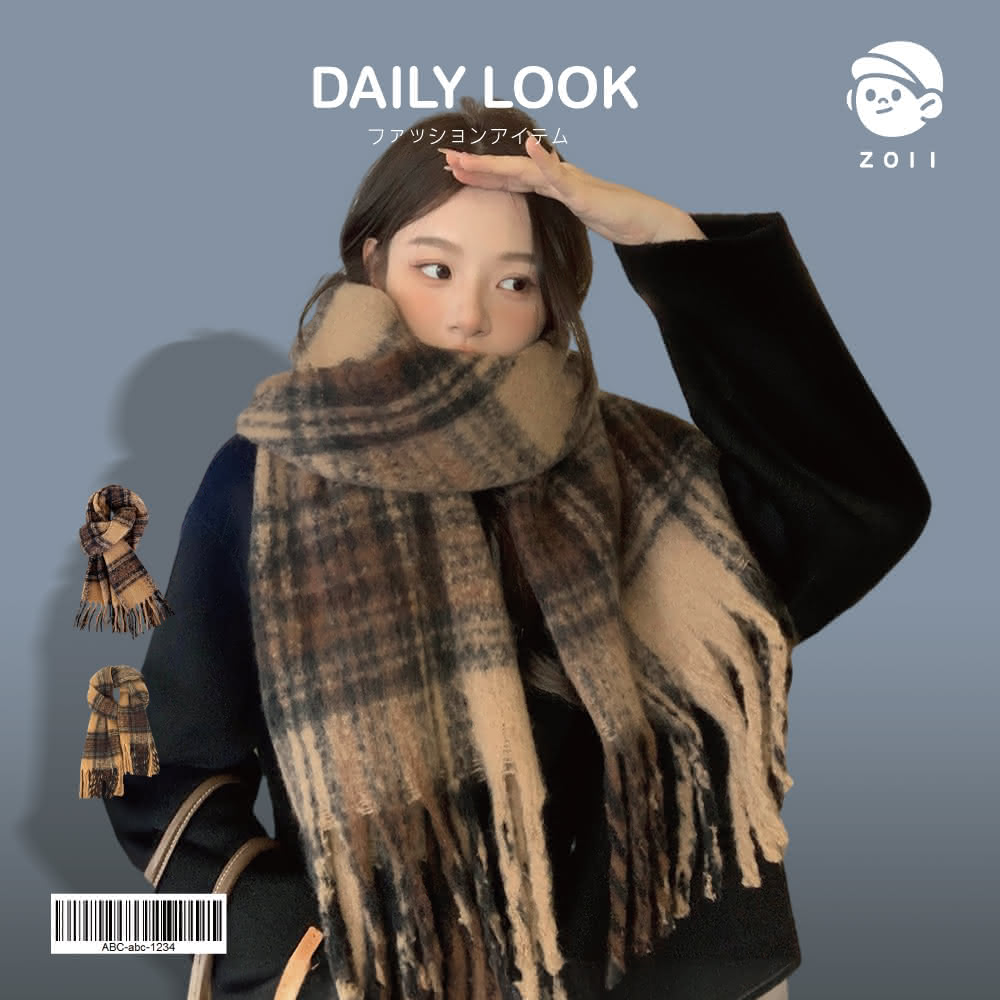 ZOII 佐壹美拉德經典格紋圍巾圍巾(秋冬圍巾 加厚圍巾保暖圍巾 冬天圍巾 披肩 圍巾女#322025)