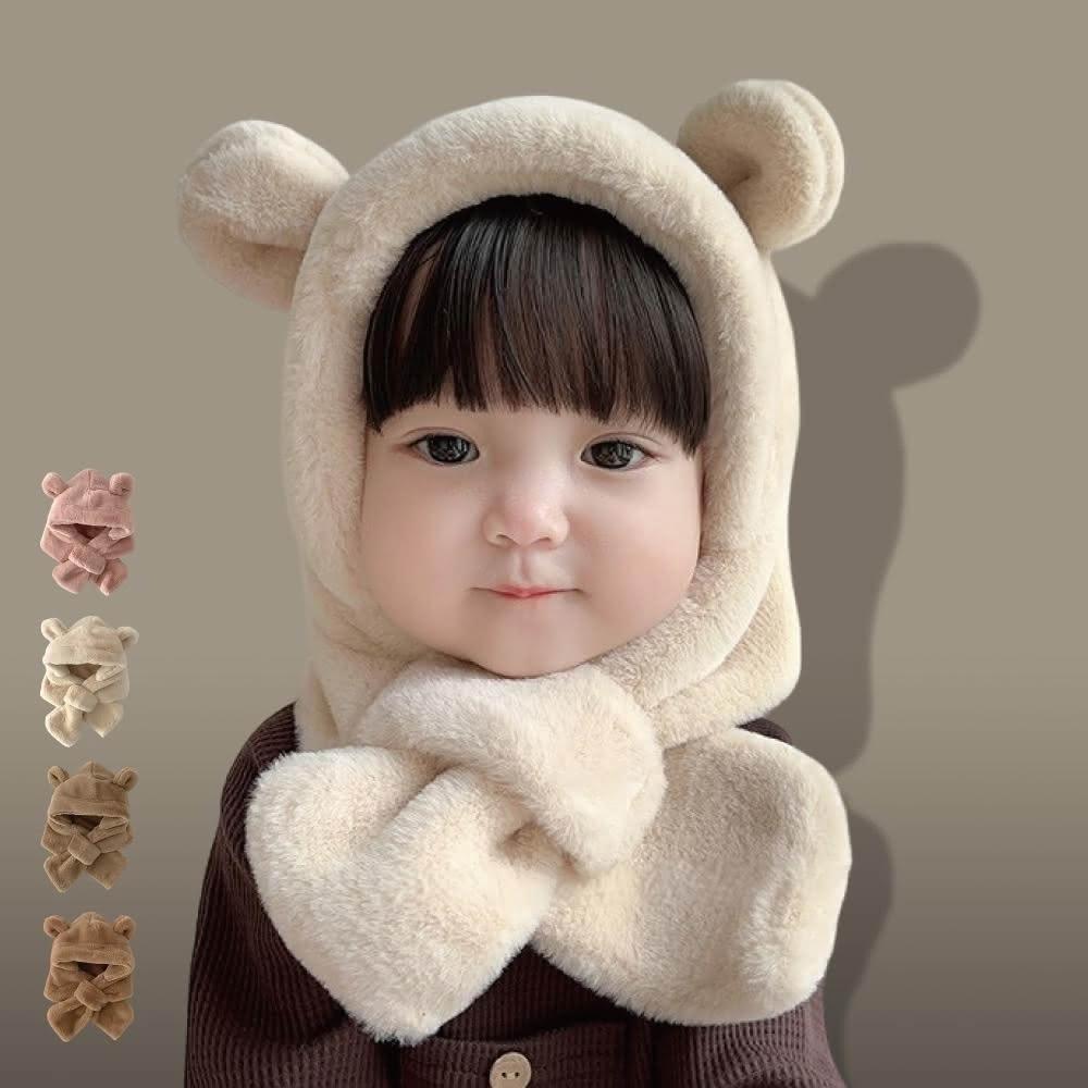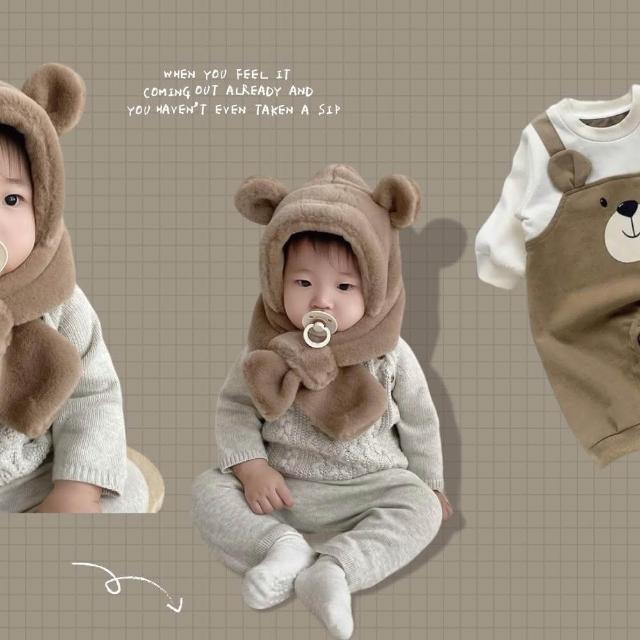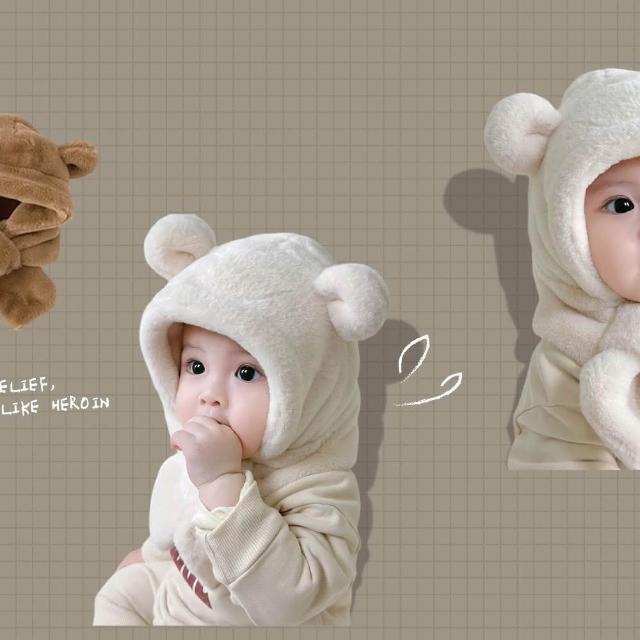 ZOII 佐壹可愛小熊兒童護耳圍巾帽 保暖帽 禦寒帽 圍巾 保暖 圍脖 小熊帽 可愛帽 毛絨帽子 #110001