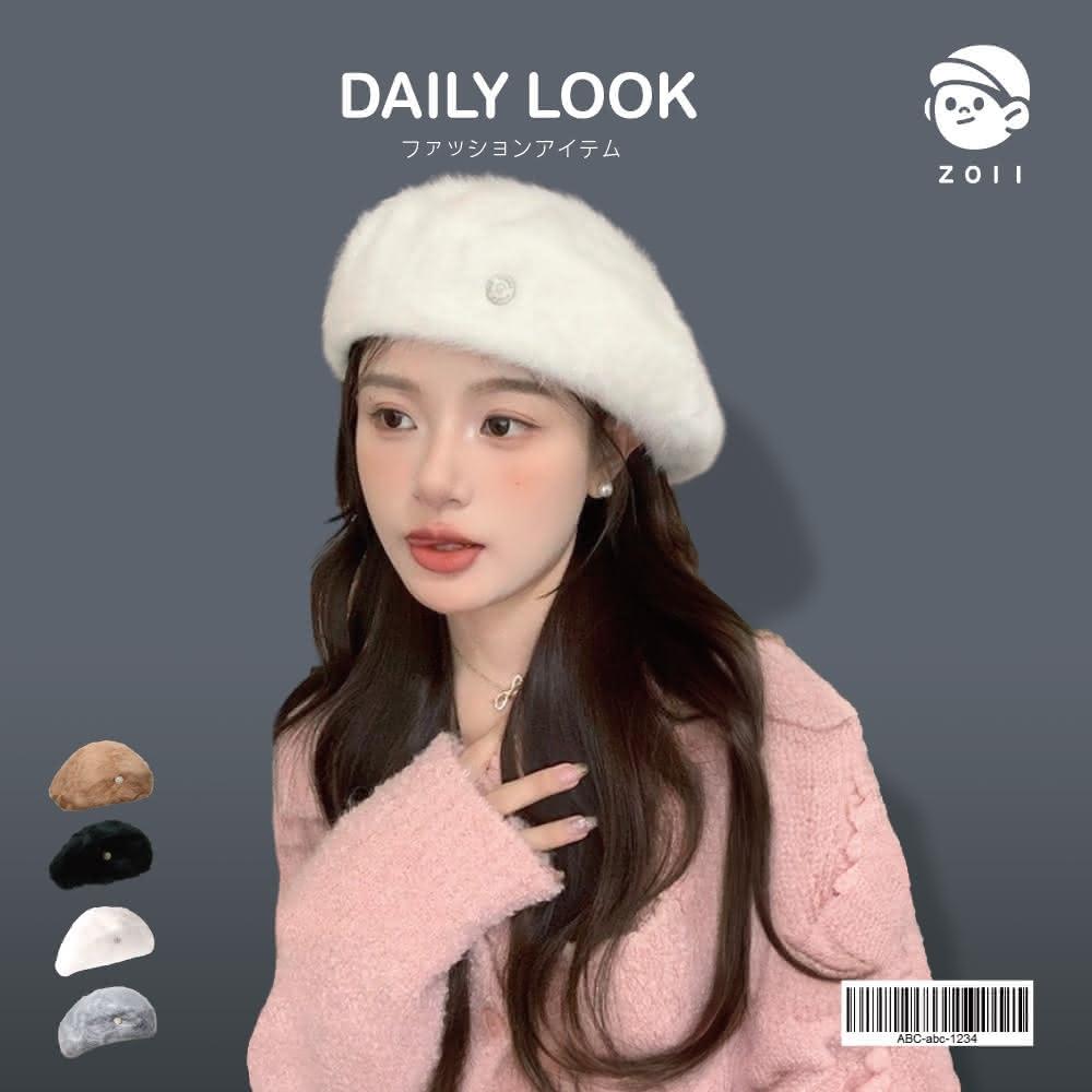 ZOII 佐壹毛絨金標貝雷帽 貝雷帽 毛帽 保暖帽 秋冬帽 畫家帽 文青帽 帽子 帽 #106030