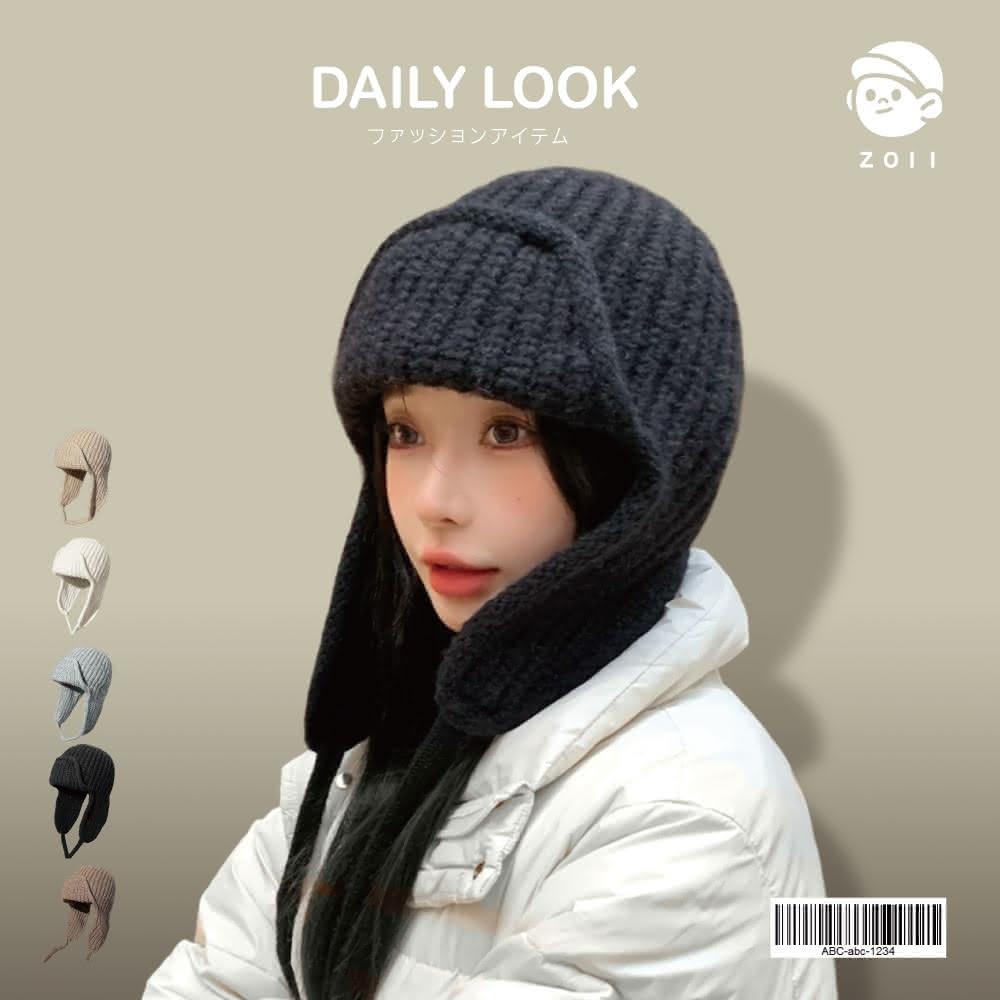 ZOII 佐壹純色綁帶護耳帽 護耳帽 保暖帽 禦寒帽 衝鋒帽 遮耳帽 帽子 帽 毛帽 針織帽 針織 #103049