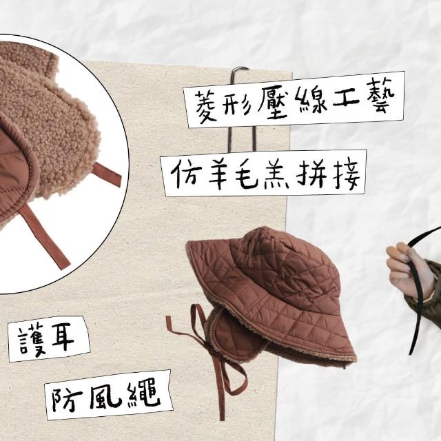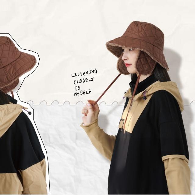 ZOII 佐壹菱格紋護耳漁夫帽 日系 毛帽 秋冬帽 保暖帽 賞雪帽 針織帽 羊羔毛帽 秋冬漁夫帽 毛帽女#101073