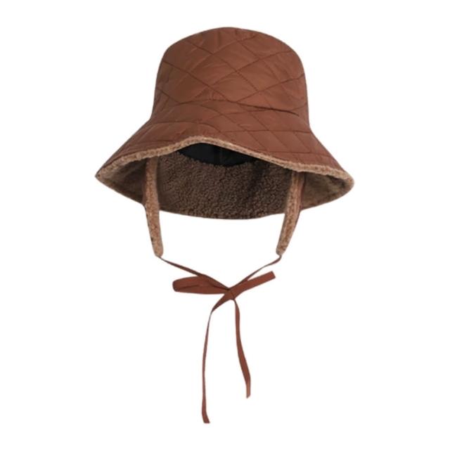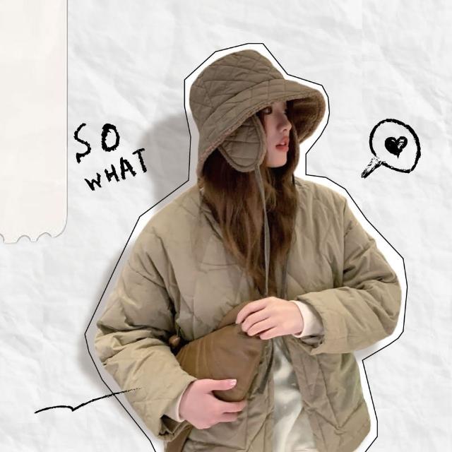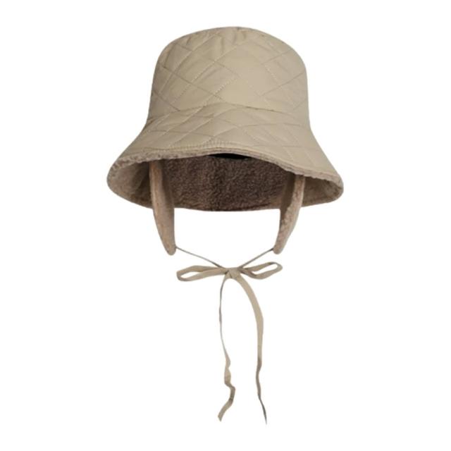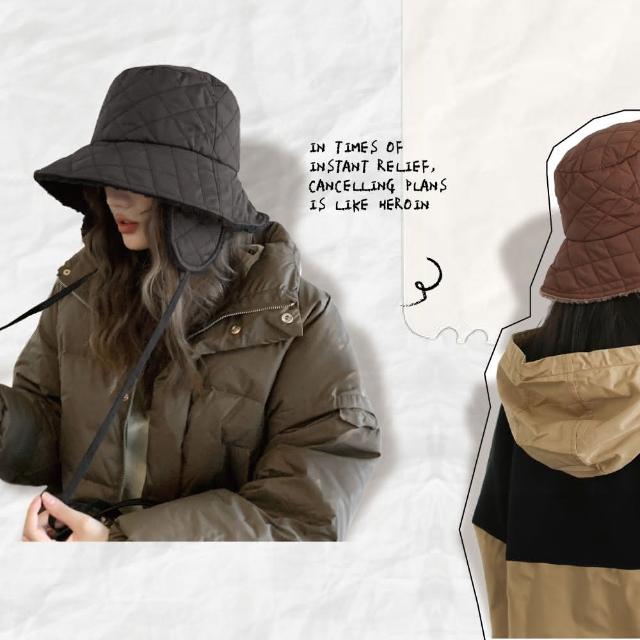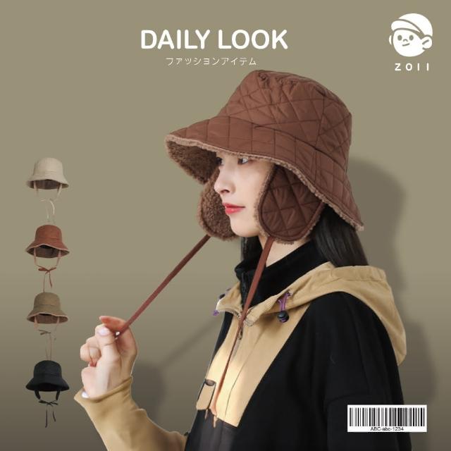 ZOII 佐壹菱格紋護耳漁夫帽 日系 毛帽 秋冬帽 保暖帽 賞雪帽 針織帽 羊羔毛帽 秋冬漁夫帽 毛帽女#101073