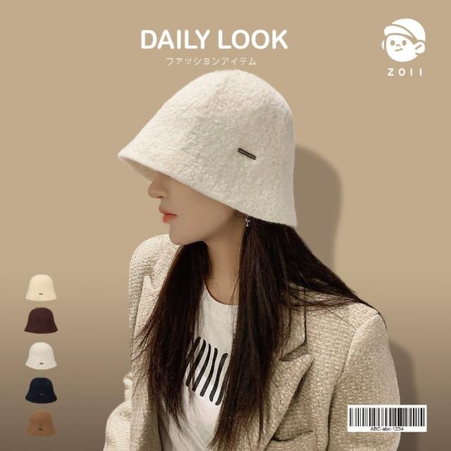 ZOII 佐壹長方標羊羔毛鐘型漁夫帽 漁夫帽 毛帽 保暖帽 配件 帽子 保暖帽 帽 秋冬漁夫帽 #101084