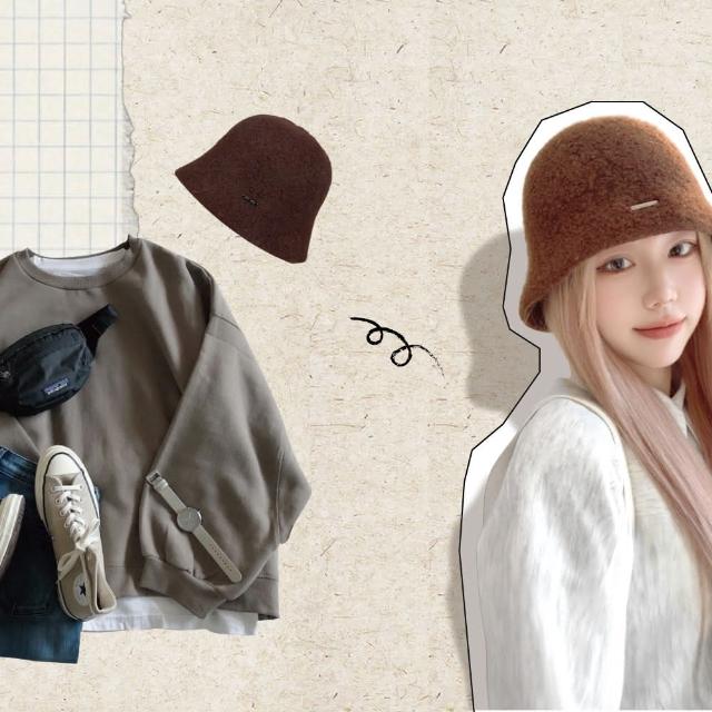 ZOII 佐壹長方標羊羔毛鐘型漁夫帽 漁夫帽 毛帽 保暖帽 配件 帽子 保暖帽 帽 秋冬漁夫帽 #101084