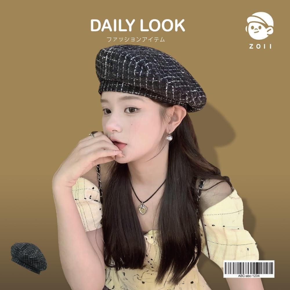 ZOII 佐壹小香風格紋貝雷帽 帽 小香風 格子帽 帽 畫家帽 貝雷帽 帽子 配件 穿搭單品 #106041