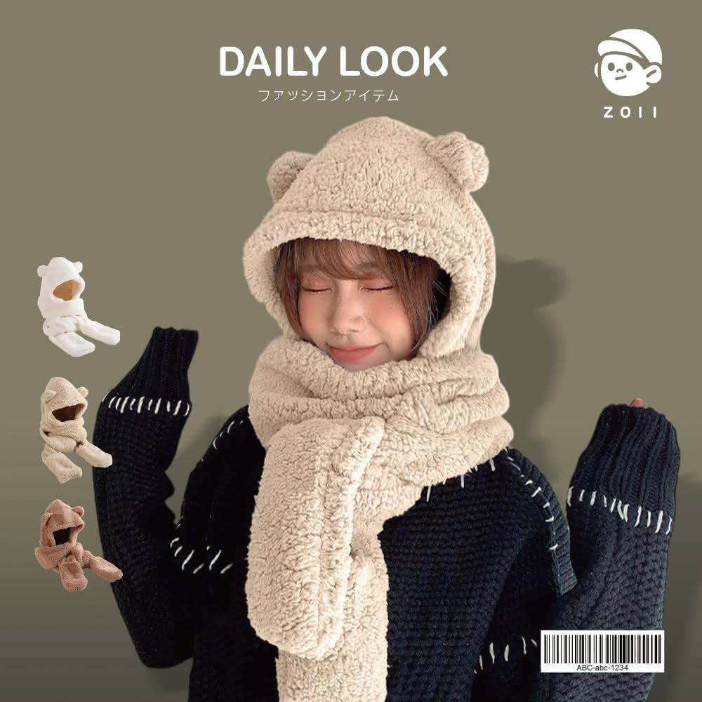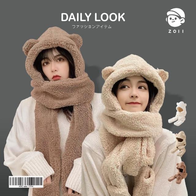 ZOII 佐壹小熊毛毛帽圍巾 可愛圍巾 小童圍巾 禦寒 保暖 圍巾 保暖圍巾 脖圍 披巾 賞雪必備 #322042