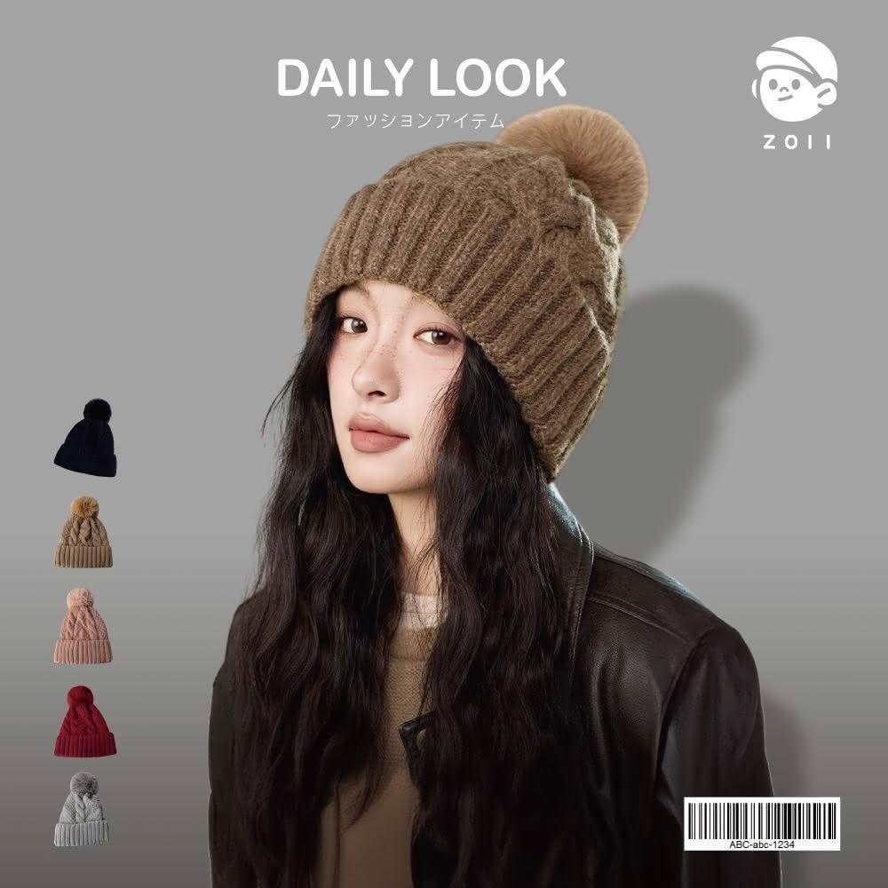 ZOII 佐壹素色麻花編織球球毛帽 毛帽 針織帽 保暖帽 秋冬帽 賞雪帽 帽子 帽 配件 抗寒 保暖 #103084