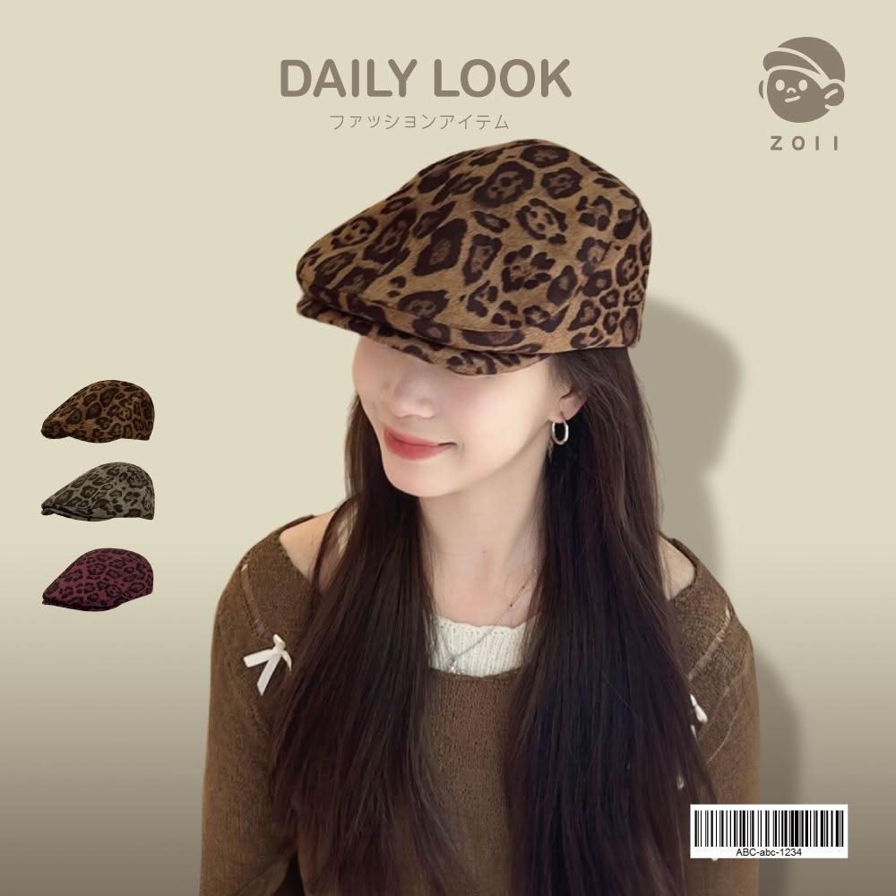ZOII 佐壹復古豹紋麂皮絨畫家帽 小偷帽 貝雷帽 報童帽 鴨舌帽 豹紋 穿搭 帽子帽 #108019