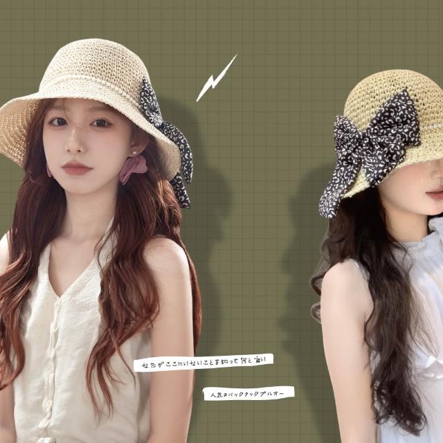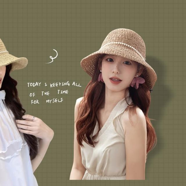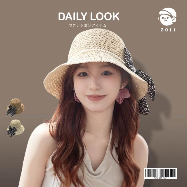 ZOII 佐壹蝴蝶結珍珠串草帽 大帽簷 帽子 編織草帽 海邊度假 海灘 渡假穿搭 草帽 海邊穿搭 遮陽#107033