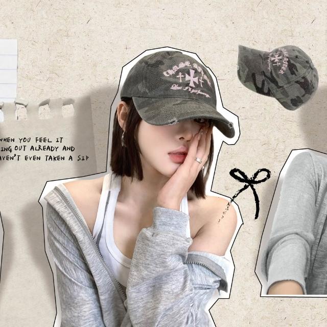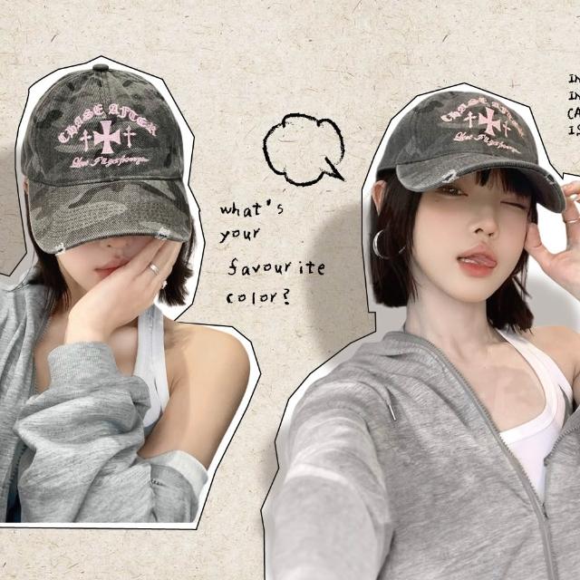ZOII 佐壹迷彩刺繡刷破老帽 鴨舌帽 迷彩 老帽 棒球帽 個性帽 穿搭 老帽 韓系 #102025
