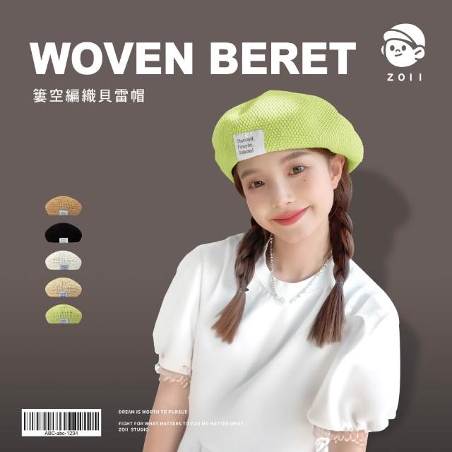 ZOII 佐壹草編布標簍空貝雷帽 氣質帽 淑女帽 帽子 帽 貝雷帽 畫家帽 貝蕾帽 南瓜帽 草編帽 #106032