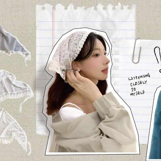 ZOII 佐壹蕾絲碎花三角頭巾 三角巾 頭巾 髮飾 飾品 造型髮帶 帽 配件 髮帶 #111017